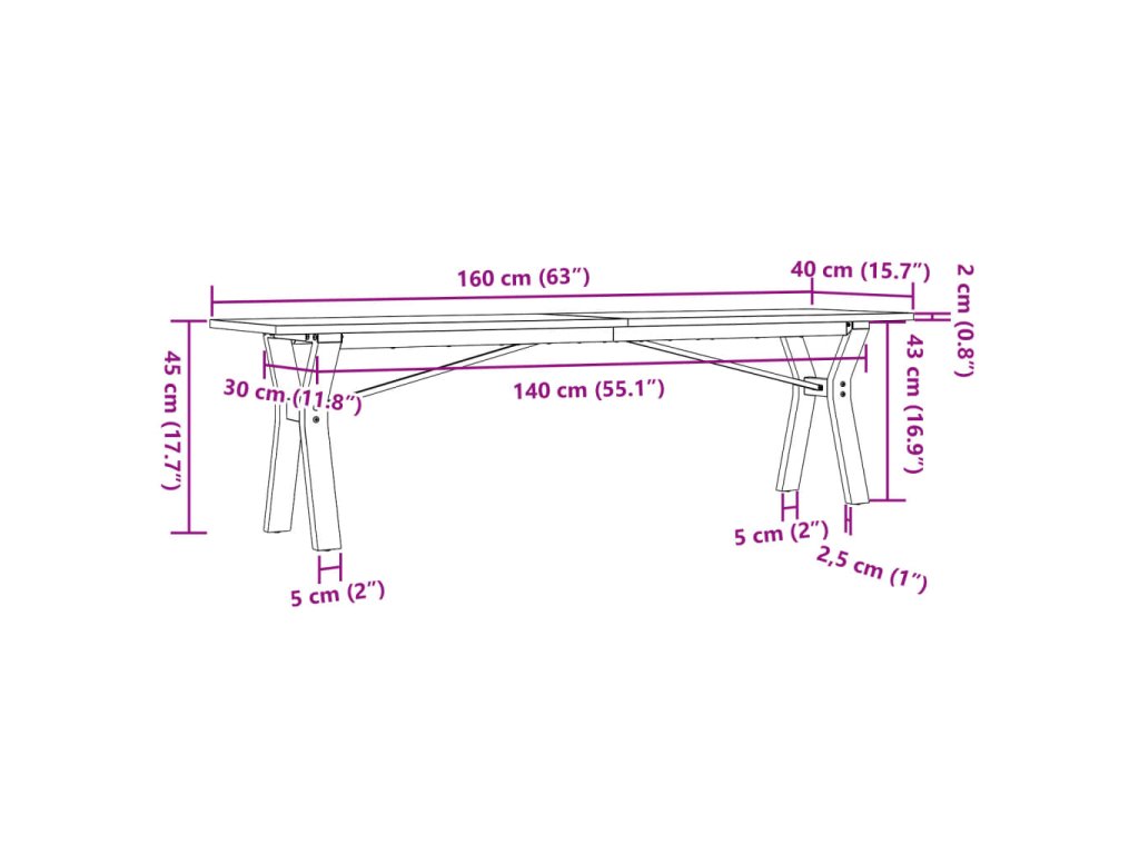 - Rozměry: 160 x 40 x 45 cm (D x Š x V)