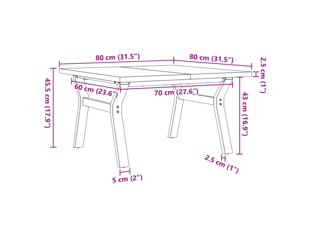 - Rozměry: 80 x 80 x 45,5 cm (D x Š x V)