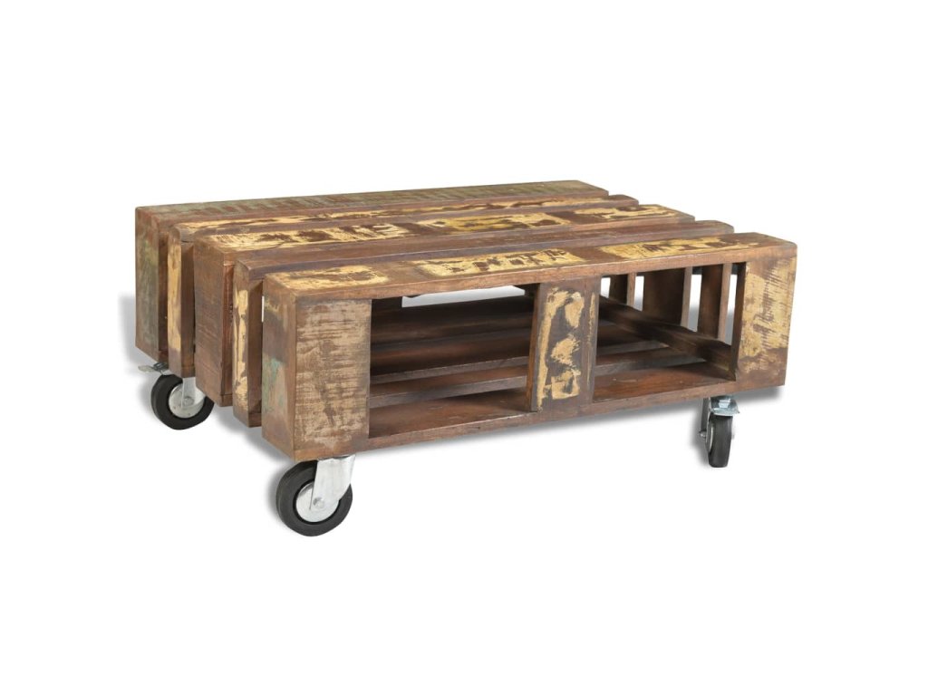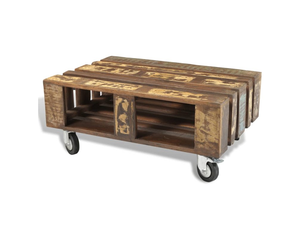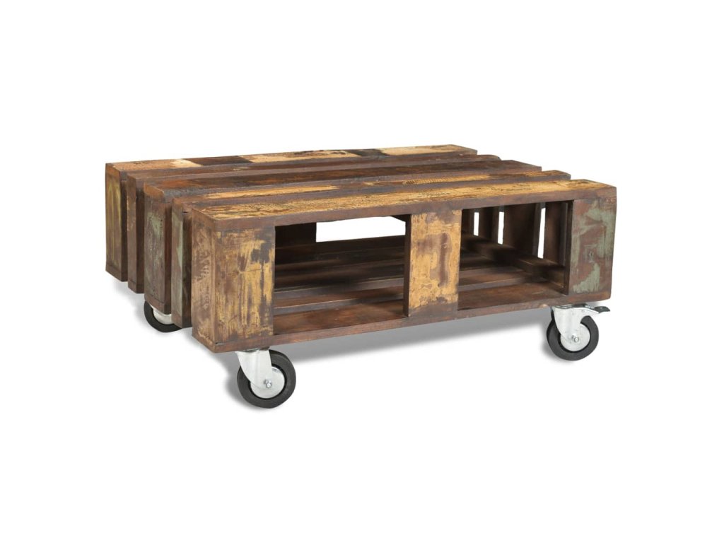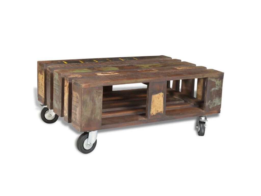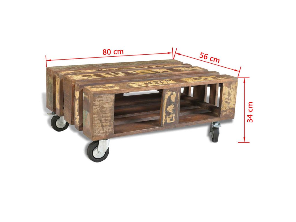 Tento dřevěný konferenční stolek ve starožitném stylu je nadčasový doplněk do vašeho domova. Stolek je stabilní a bezpečná masivní dřevěná stolní deska je ideální pro odkládání nápojů a vystavení váz, ovoce nebo dekorací. Úložná část pod stolkem vám nabízí spoustu místa pro ukládání knih, časopisů, společenských her nebo jiných předmětů. 4 zabudovaná kolečka s blokovací funkcí usnadňují přemisťování stolku z místa na místo.