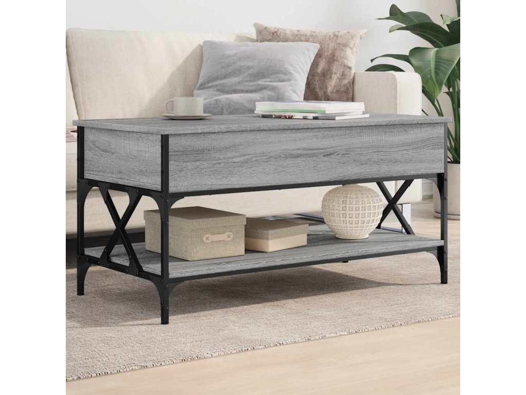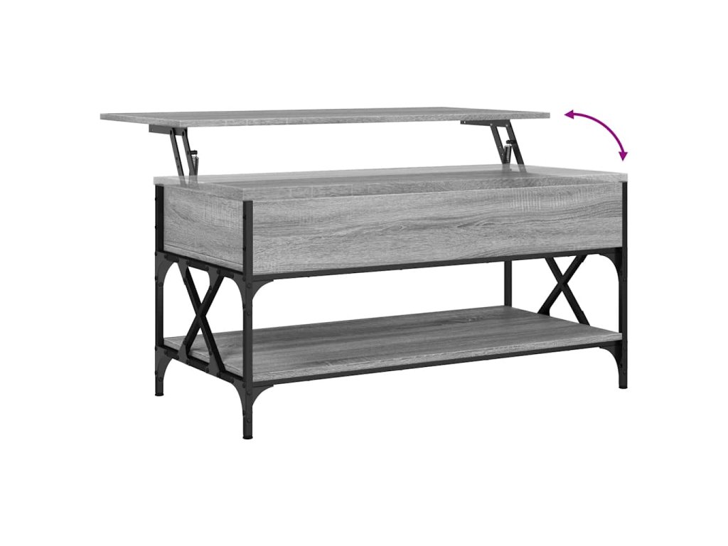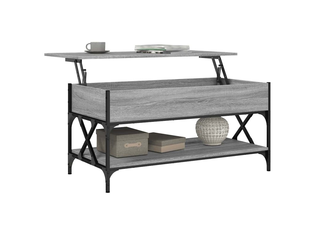 - Design se zvedací deskou: Stolní deska tohoto stolku k pohovce se dá hladce zvednout do pohodlné výšky, a tím jej přeměnit na místo, kde můžete pracovat nebo stolovat.