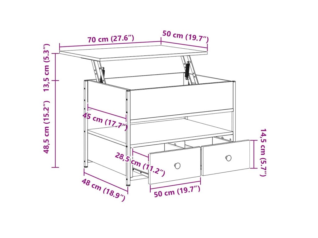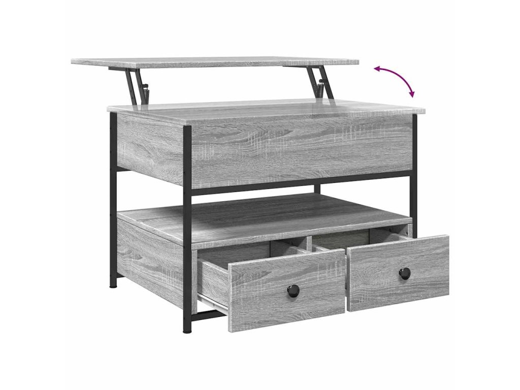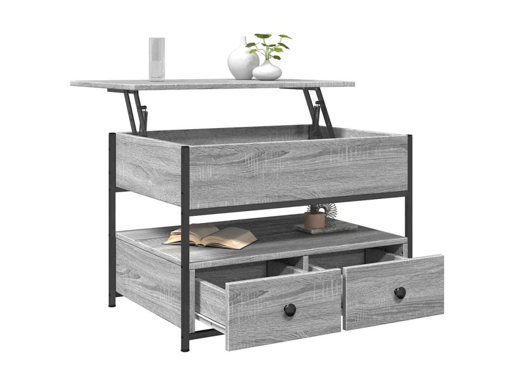 - Design se zvedací deskou: Stolní deska tohoto stolku k pohovce se dá hladce zvednout do pohodlné výšky, a tím jej přeměnit na místo, kde můžete pracovat nebo stolovat.