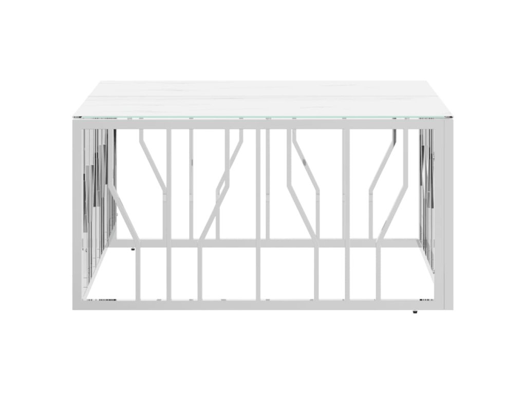 - Skleněná stolní deska: Tento stolek do obývacího pokoje má desku z tvrzeného skla s mramorovanou povrchovou úpravou, která mu dodává na kráse. Stolní deska poskytuje viditelnou a dostatečnou plochu pro servírování občerstvení a nápojů či pro vystavení váz, mís s ovocem nebo jiných dekorativních předmětů.