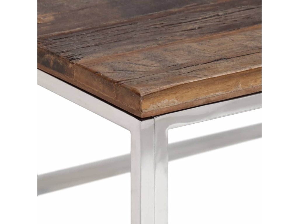 - Horní deska z masivního pražcového dřeva: Horní deska tohoto odkládacího stolku poskytuje bezpečnou a dostatečnou plochu pro servírování občerstvení a nápojů či pro vystavení váz, mís s ovocem nebo jiných dekorací.
