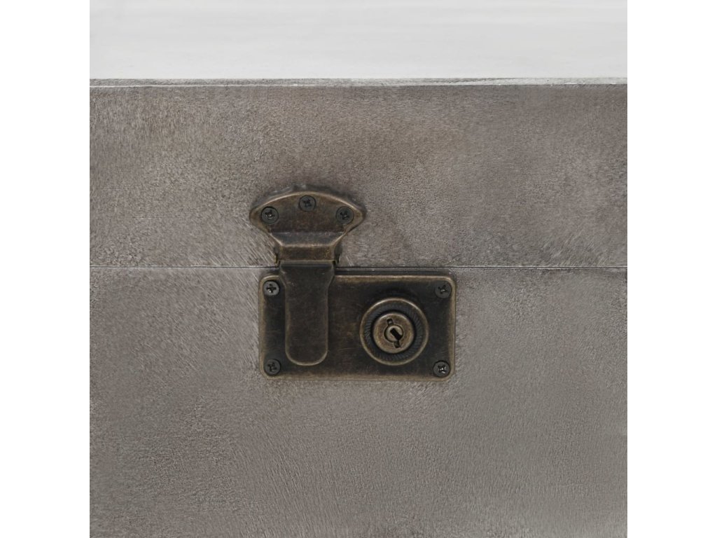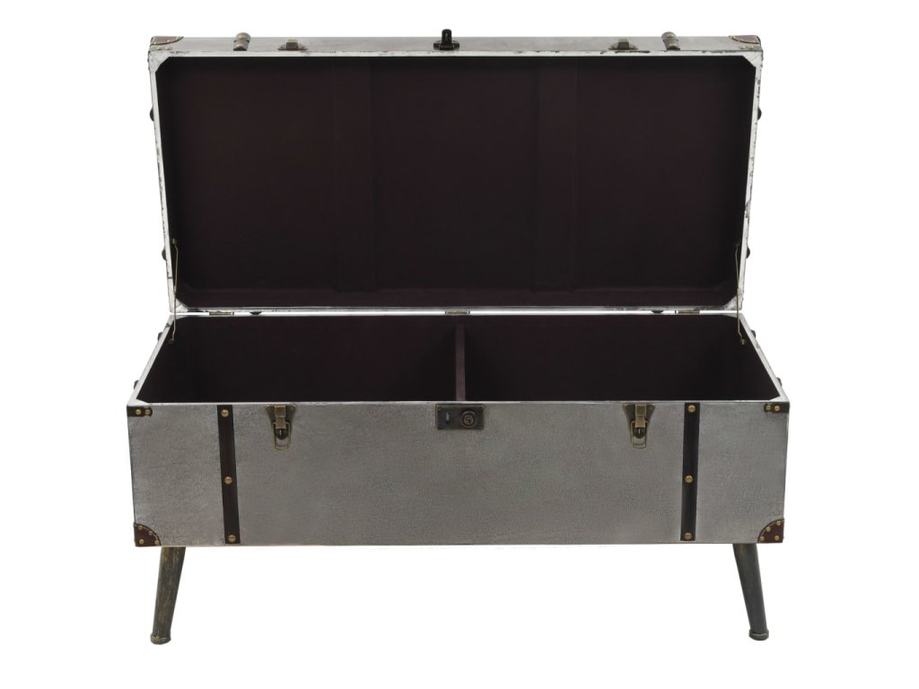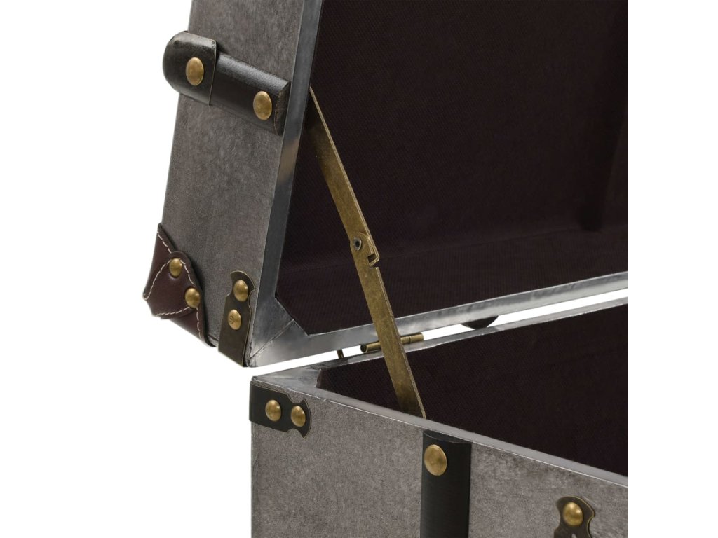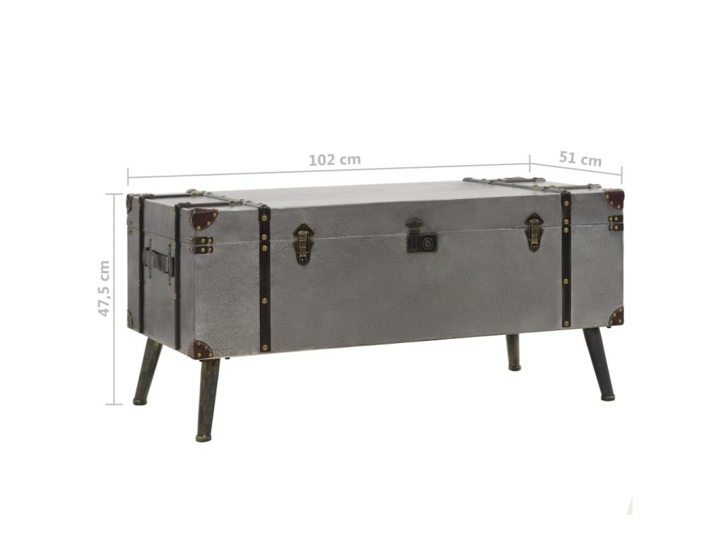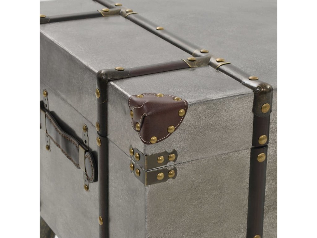 Tento odolný a překrásný stolek je vyroben z MDF s hliníkovým povrchem a s potahem z netkané textilie. Pevné ocelové nohy přispívají k jeho rustikálnímu šarmu. Stolní deska se výborně hodí k pokládání nápojů nebo k vystavování váz, květináčů, košíků s ovocem a jiných dekorativních předmětů. Úložný box disponuje dvěma vnitřními přihrádkami, které vám poskytnou spoustu prostoru, kam můžete ukládat přikrývky, knížky, časopisy, dálkové ovladače a další předměty, které nechcete mít na očích, ale přesto po ruce. Díky měkkým a pohodlným rukojetím lze zavazadlový konferenční stolek snadno přesouvat po celém obývacím pokoji.