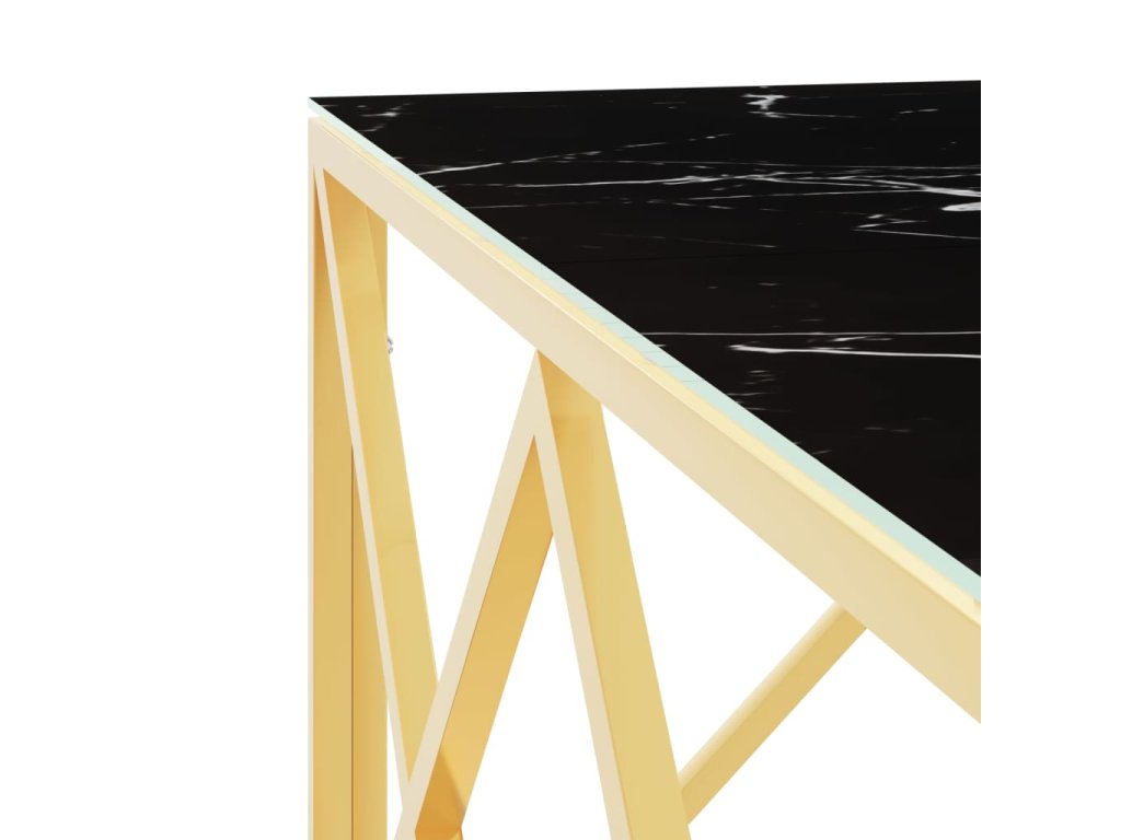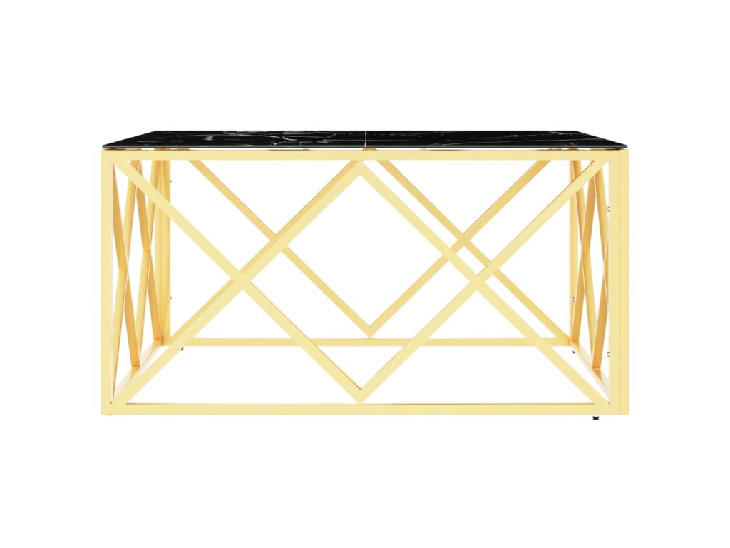 - Skleněná stolní deska: Tento stolek do obývacího pokoje má desku z tvrzeného skla s mramorovanou povrchovou úpravou, která mu dodává na kráse. Stolní deska poskytuje viditelnou a dostatečnou plochu pro servírování občerstvení a nápojů či pro vystavení váz, mís s ovocem nebo jiných dekorativních předmětů.