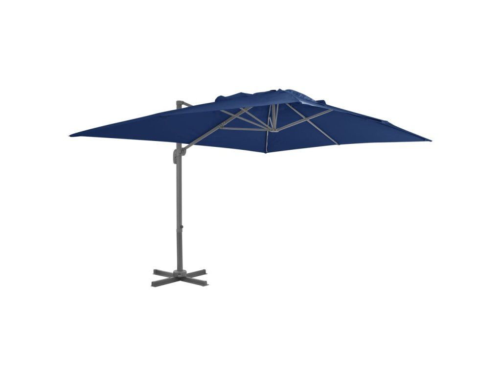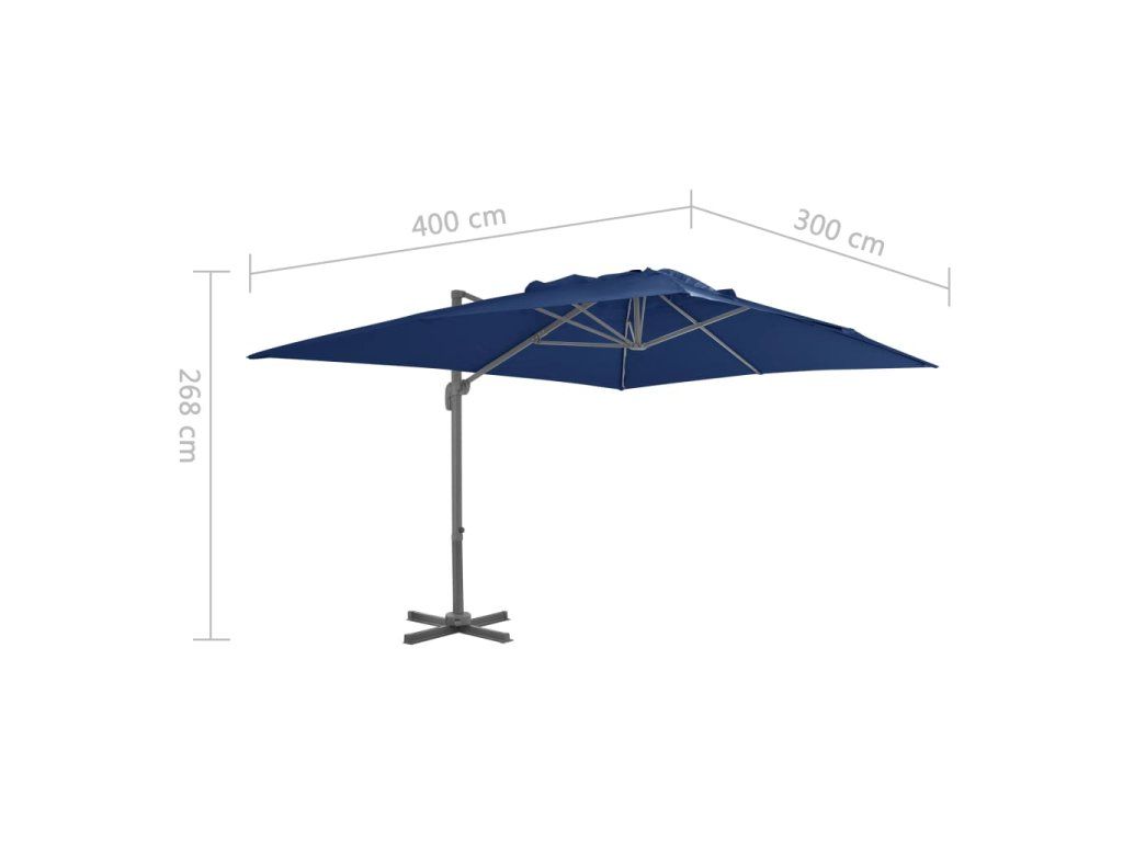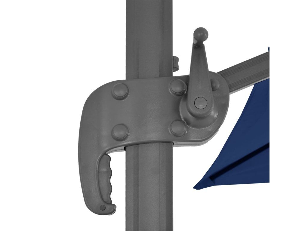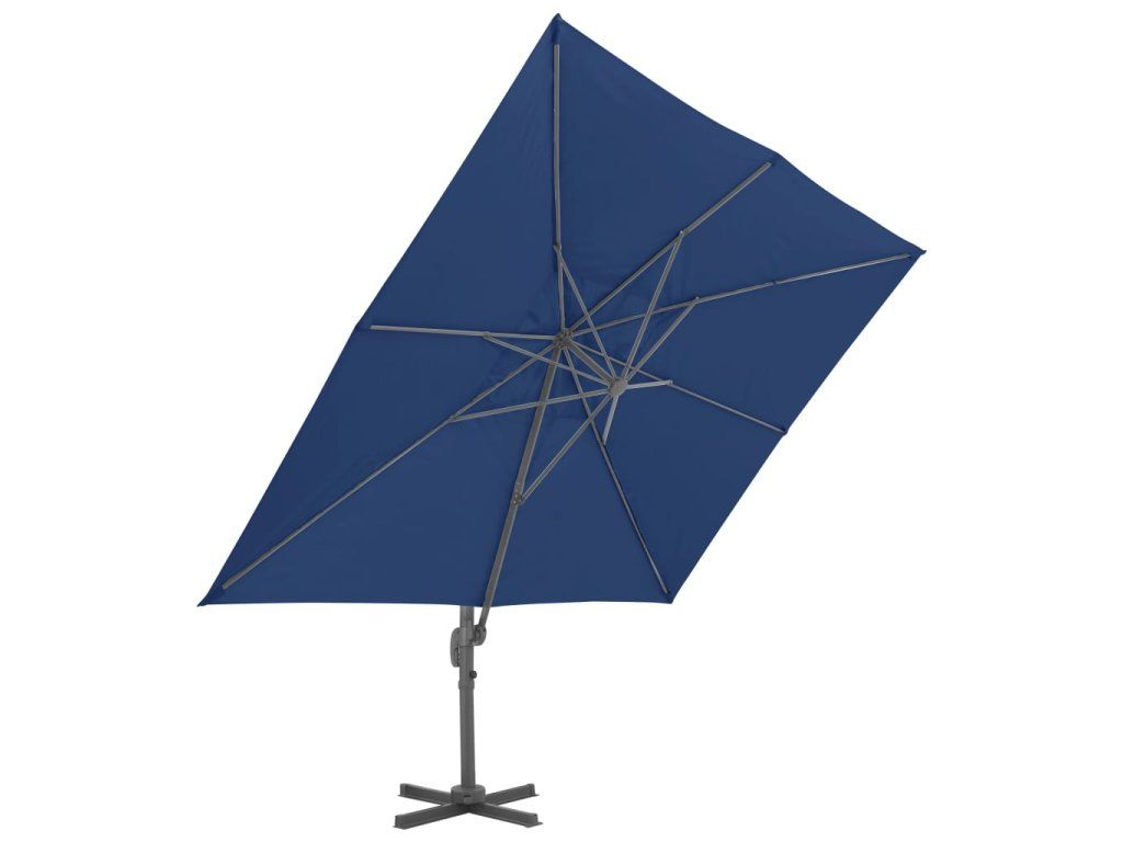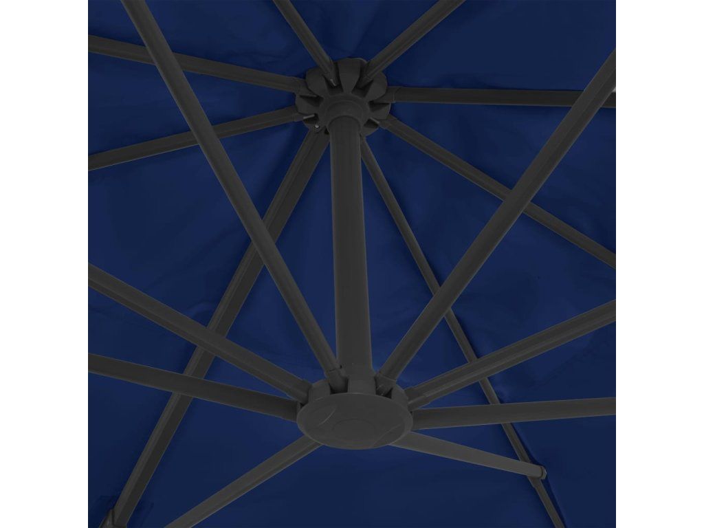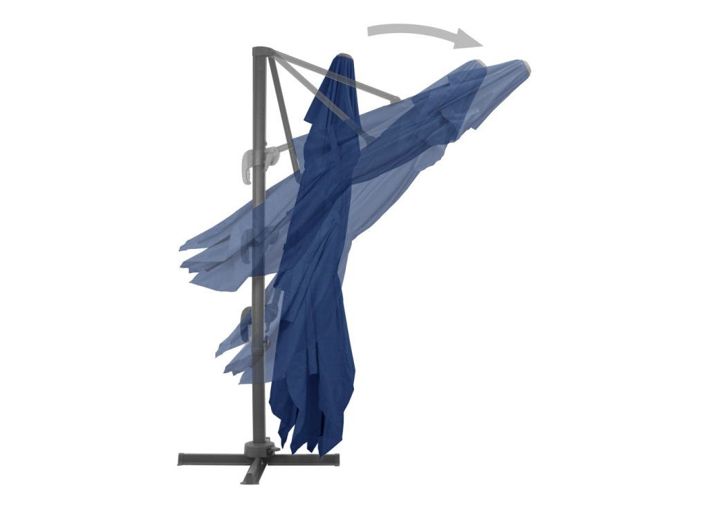 Stříška slunečníku je vyrobená z polyesteru, který nepropouští UV záření a nevybledne. Skvěle vás ochrání před sluncem a navíc se snadno čistí. Slunečník je opatřen křížovou základnou pro lepší stabilitu. Pro otevření a zavření stačí otočit páčkou na tyči. Zatlačením nahoru nebo dolů si pak můžete nastavit úhel stříšky. Středovou tyč lze pomocí pedálu otáčet o 360 stupňů. Je vyrobena ze silného hliníku s práškovým nástřikem a opatřena 8 odolnými žebry. Slunečník se díky ní nehýbe a dlouho vydrží. Sestavení výrobku je jednoduché.