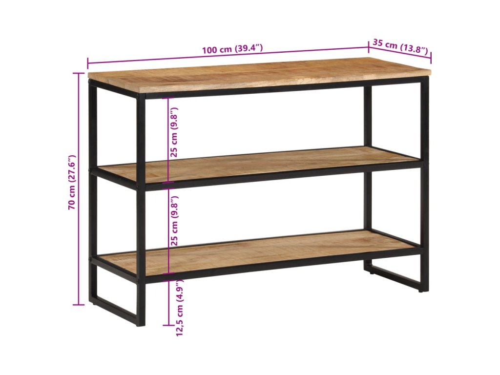 - Materiál: masivní hrubé mangovníkové dřevo s přírodním povrchem, železo