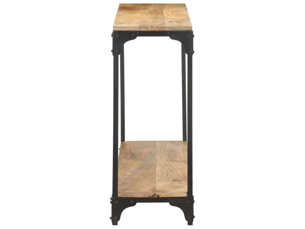 Tento předsíňový stolek je vyrobený z masivního mangovníkového dřeva, což je tvrdé tropické dřevo. Snese zátěž a také výborně odolá opotřebení časem. Vynikající řemeslné zpracování a krásná kresba dřeva dává každému kusu nábytku odlišný charakter, takže nenajdete dva zcela stejné. Ocelový rám s černým práškovým nástřikem dodává stolu robustnost a stabilitu. Pevná horní deska nabízí dostatek prostoru pro položení ovocných košů, fotorámečků nebo jiných dekorativních předmětů. Spodní police je ideální pro přehledné uložení časopisů, knih a dalších drobností, které jsou pro vás nezbytné a chcete je mít na dosah.