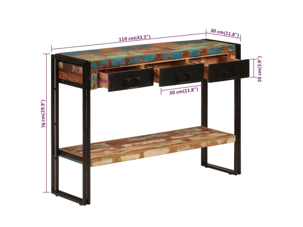 Tento dřevěný konzolový stolek ve starožitném stylu vyzařuje industriální styl, a proto bude jedinečným doplňkem vašeho současného domova.