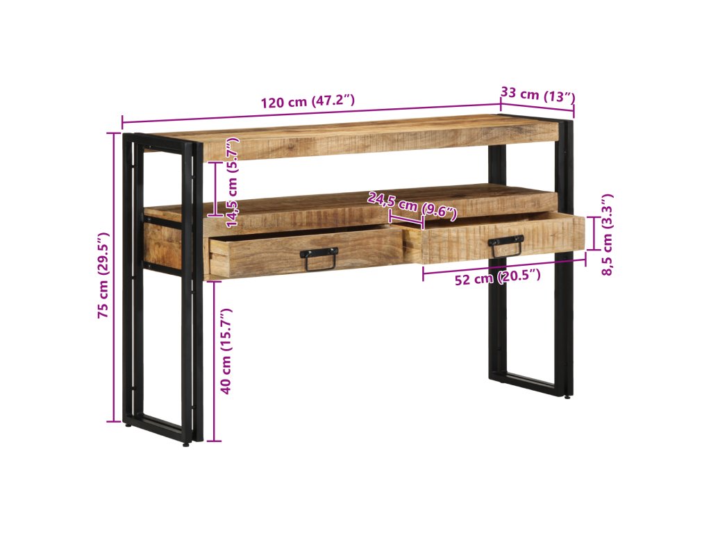 Tento industriální stolek z mangového dřeva skvěle spojuje styl a funkčnost. Vyrobený z masivního mangového dřeva v bohaté hnědé barvě, má pevný železný rám, což z něj dělá ideální volbu pro váš obývák, ložnici nebo chodbu. Dodá prostoru rustikální kouzlo a městský styl.