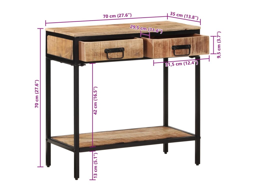 - Materiál: masivní hrubé mangovníkové dřevo s přírodním povrchem, železo
