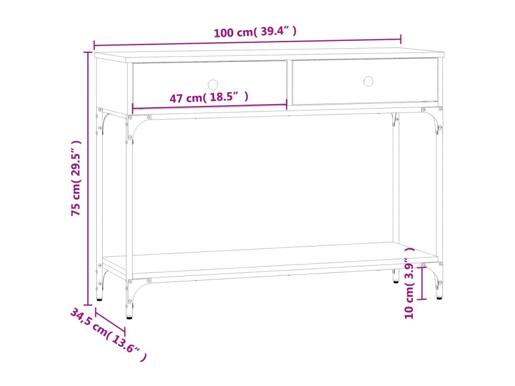 - Robustní stolní deska: Robustní deska tohoto stolku do předsíně je ideální k vystavení zarámovaných fotografií, rostlin v květináčích a jiných dekorativních předmětů.