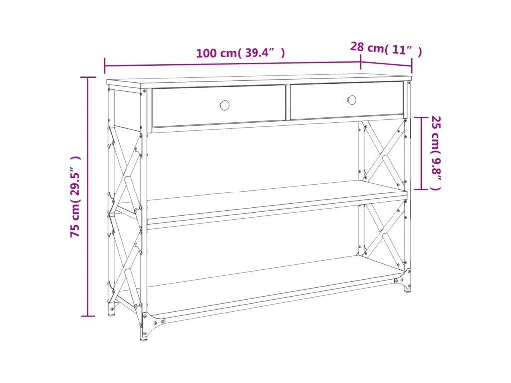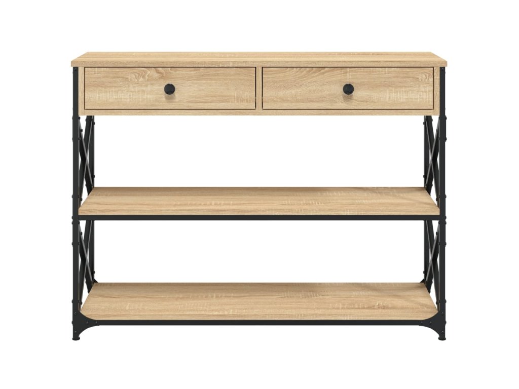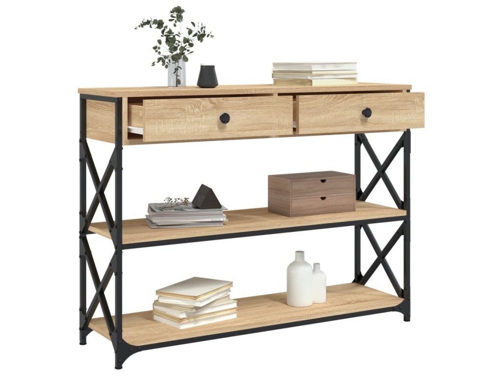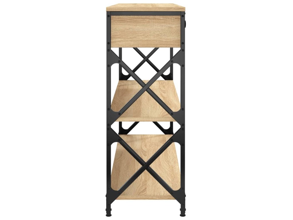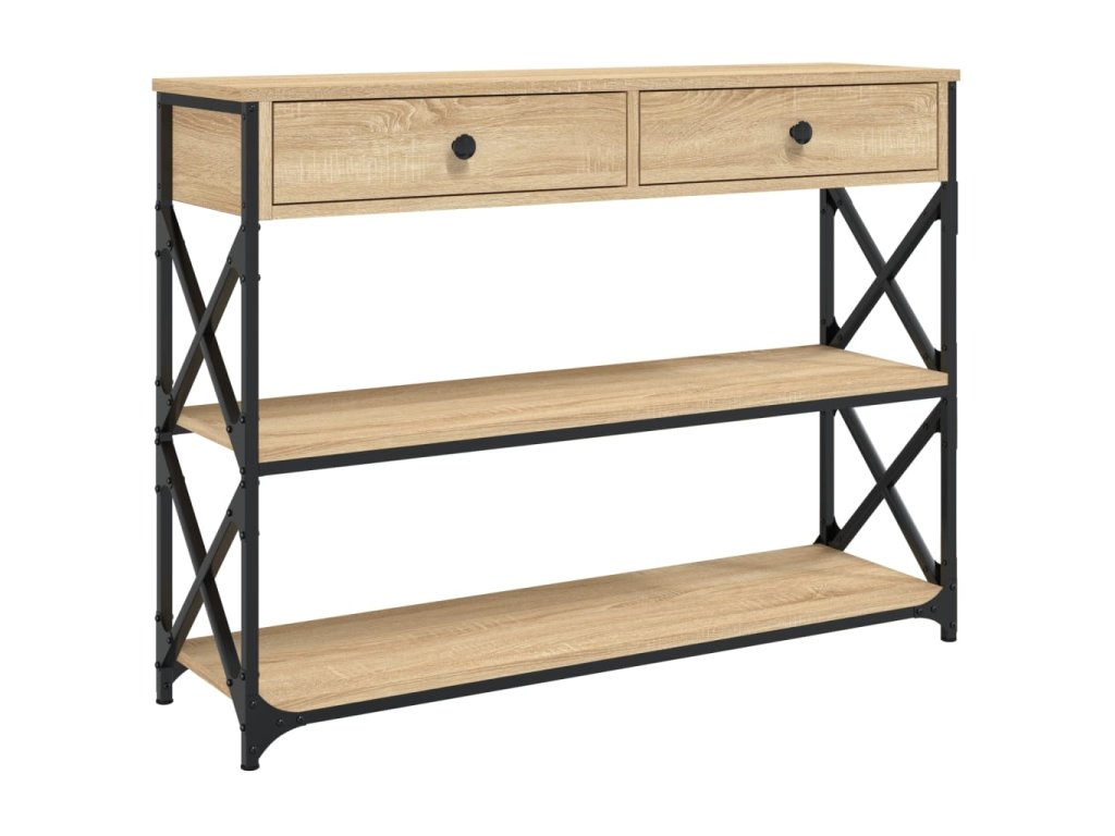 - Kovový rám: Kovový rám dodá vašemu interiéru industriální styl a zároveň zajistí výtečnou odolnost a stabilitu. Stolek do předsíně má příčky ve tvaru X pro větší stabilitu, takže se nemusíte obávat, že se bude viklat na podlaze.