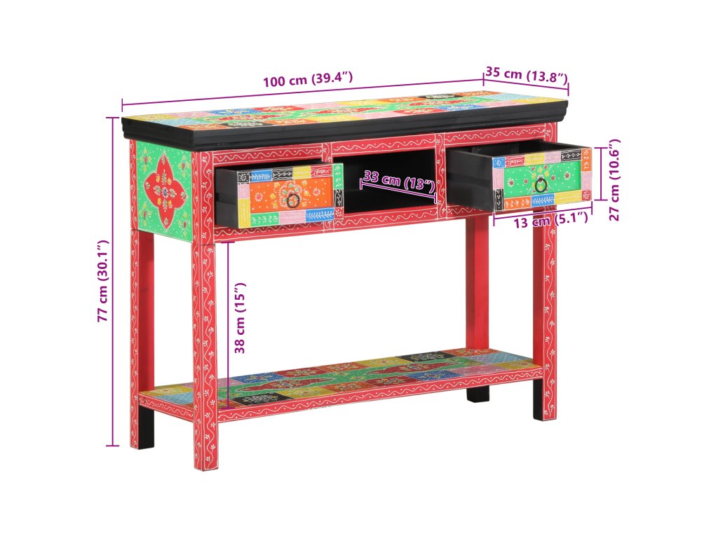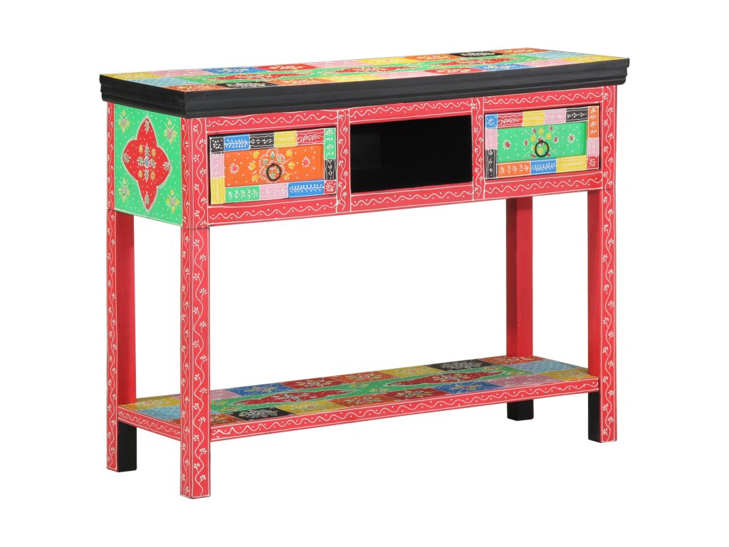 Tento konzolový stolek spojuje praktičnost a umělecký styl, což z něj dělá parádní doplněk do každého prostoru. Jasně červené a barevné detaily dodají šmrnc vchodům nebo obývákům a vytvoří skvělou expozici pro tvoje dekorace.