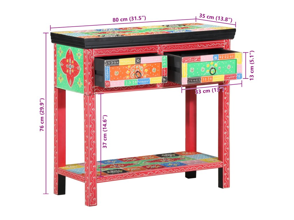 Tenhle vícebarevný konzolový stolek rozjasní tvůj prostor svými úžasnými paisley a květinovými vzory a přináší bohémského ducha. Je perfektní do předsíní nebo jako stylová výstava a hodí se k různým domácím dekorům – spojuje styl s funkčností.