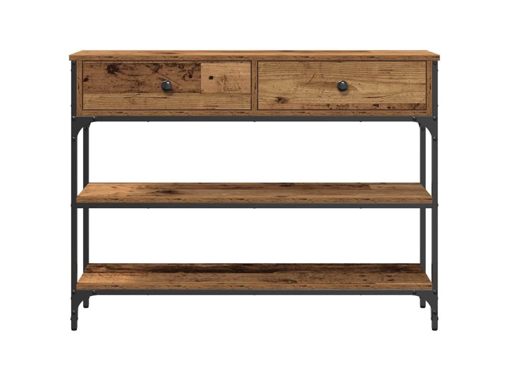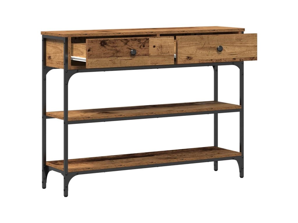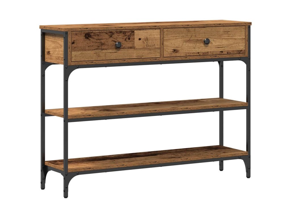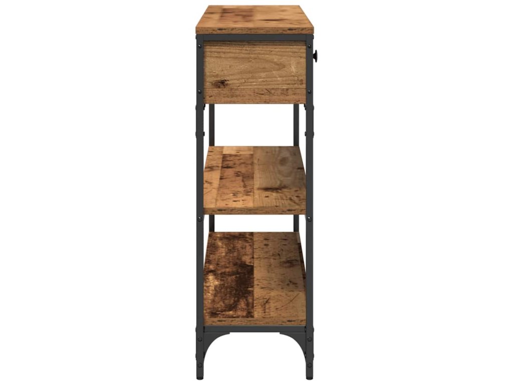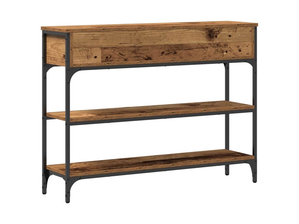 Tenhle konzolový stolek v industriálním stylu má elegantní a funkční design, perfektní pro obývák. Obdélníkový tvar mu dává šanci stát hezky u zdi a nabízí ti místo na vystavení nebo úložiště. Skvělý pro ty, co mají rádi surové materiály, tenhle stůl spojuje kompozitní dřevo a ocel pro dlouhotrvající a stylový vzhled. Ideální pro městské prostory nebo lofty, dodává moderní nádech a je to super kousek pro různé interiéry.