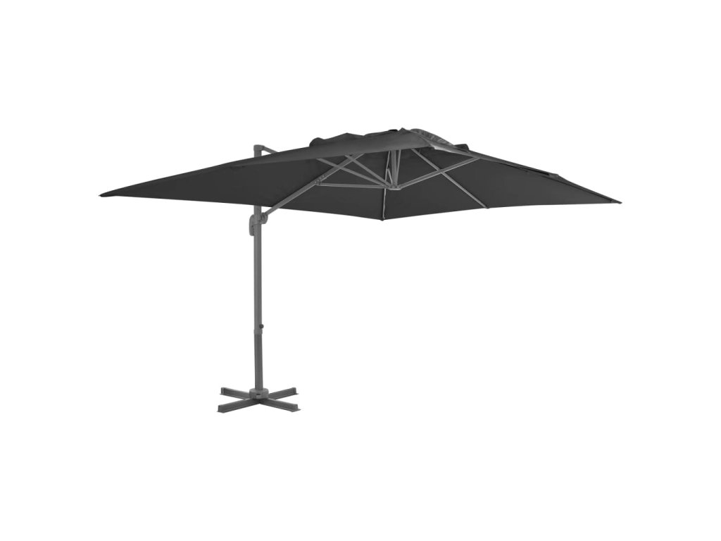 Ochranný kryt slunečníku je vyroben z polyesteru s UV ochranou a odolností proti blednutí, poskytuje vám optimální ochranu před sluncem a snadno se čistí. Má pevnou křížovou základnu pro větší stabilitu. Náš zahradní slunečník lze snadno otevřít a zavřít pouhým otočením knoflíku na tyči. Úhel krytu lze nastavit stisknutím a zatažením rukojeti nahoru a dolů. Střední tyč lze také otáčet o 360 stupňů pomocí pedálu. Silná práškově lakovaná hliníková tyč spolu s 8 odolnými žebry činí tento slunečník velmi stabilním a odolným. Montáž je snadná.