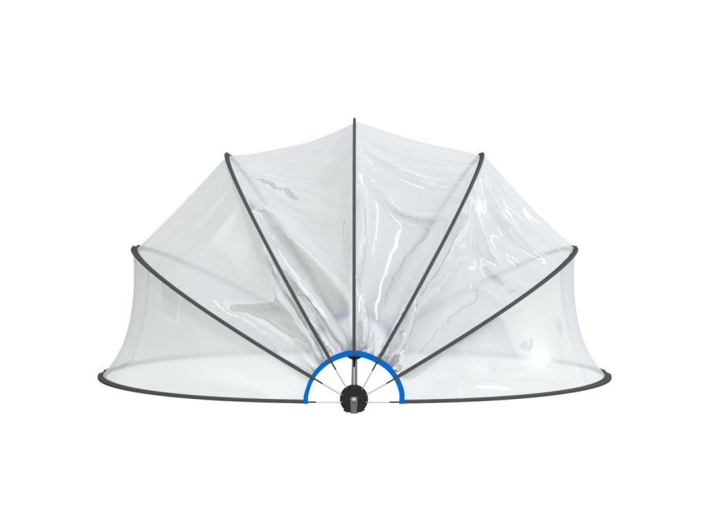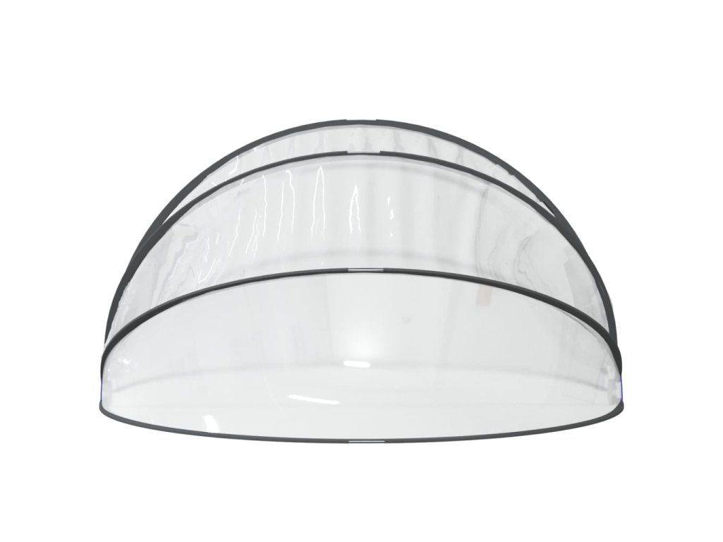 - Ochrana bazénu: Kopule na bazén je vyrobená z PVC UPF 30 a má konstrukci ze sklolaminátu, poskytne tedy dokonalou ochranu před sluncem a deštěm. Zabrání také, aby do bazénu zvenku pronikly nečistoty, jako je listí, hmyz a prach.