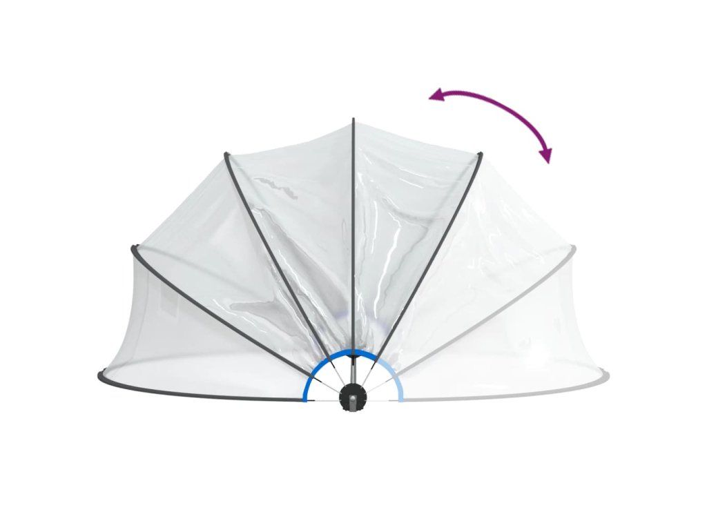 - Snadné ovládání: Pomocí jedinečného mechanismu závěsů se kopule snadno otevírá a zavírá.