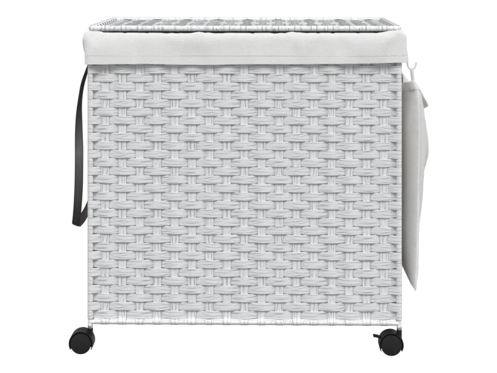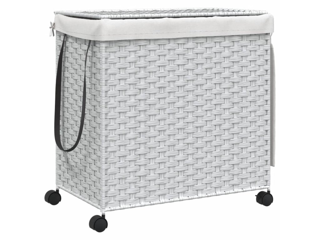 - Více přihrádek: Tento koš na prádlo s kolečky má dvě přihrádky, které vám pomohou třídit a ukládat světlé, tmavé a barevné oblečení zvlášť.