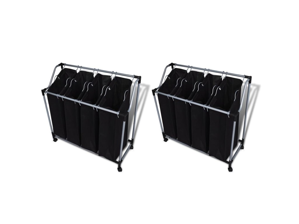 Každý z košů na prádlo je vybavený 4 rozměrnými vaky na třídění prádla, které lze snadno vyjmout a přenášet pomocí ocelových rukojetí. Kolečka a rukojeti na obou koncích rámu prádelních košů usnadňují přemisťování celé konstrukce. Odolný ocelový rám unese až 20 kg špinavého prádla. Sestavení a údržba tohoto produktu jsou snadné.