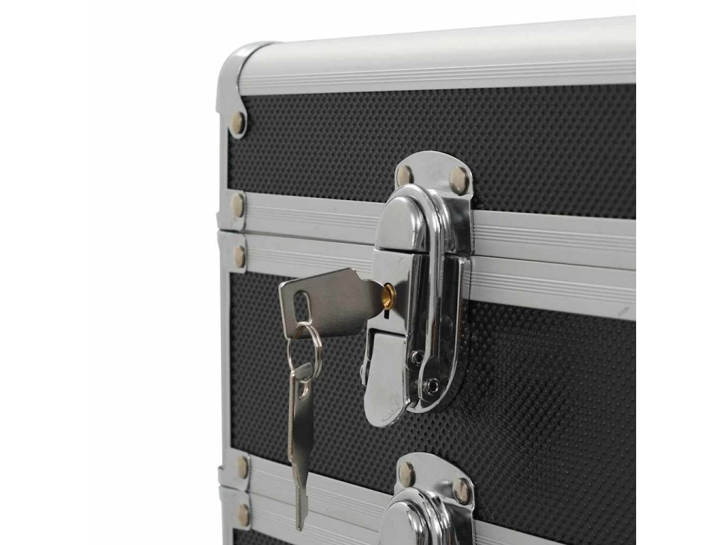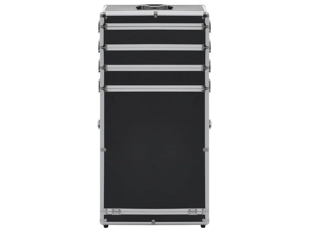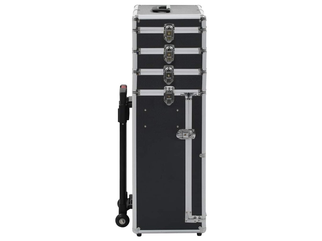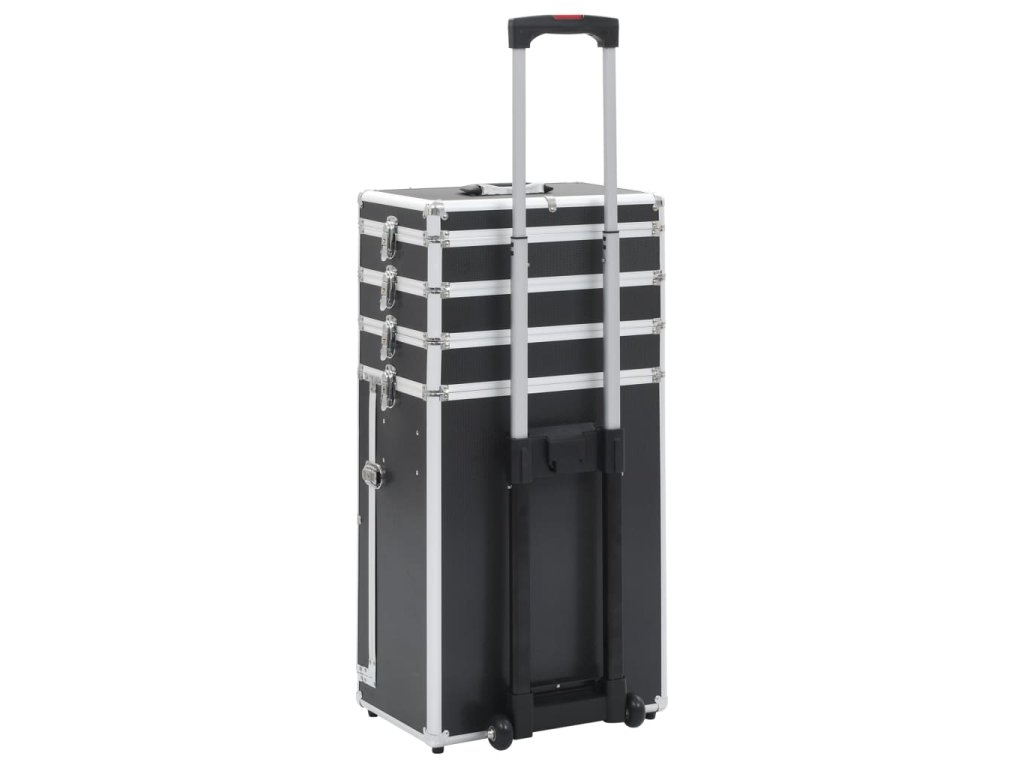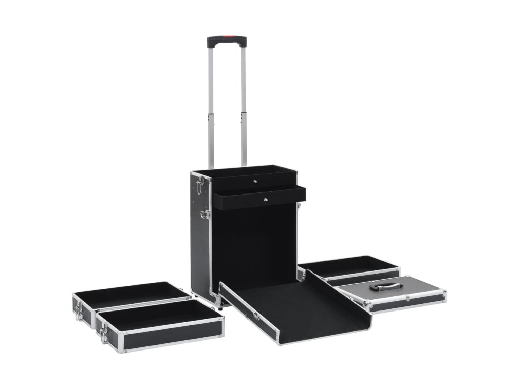 Tento kosmetický kufřík je vyrobený ze dřeva, ABS fólie a hliníku a snadno si do něj uložíte svou kosmetiku tak, aby cestovala v bezpečí. Tento kosmetický kufr má 4 části a 1 zásuvku. Najdete v něm dostatek úložného prostoru pro vaše kosmetické a kadeřnické výrobky. Je vybaven 4 odnímatelnými kolečky, takže jej můžete snadno převážet a vzít ho kamkoliv s sebou!