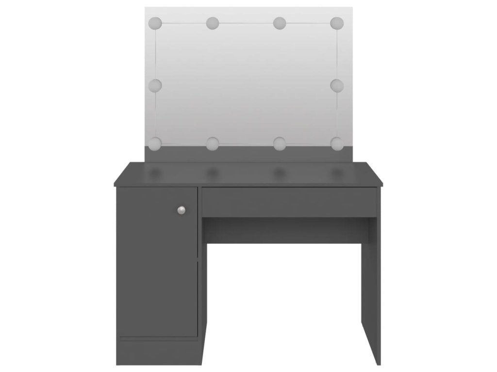 Tento toaletní stolek, vyrobený z MDF, zaujme elegantní siluetou a jednoduchými liniemi v moderním stylu. Nabízí dostatek prostoru pro vaše líčidla a budete tak mít vše pěkně uložené na svém místě. Krásné zrcadlo vám navíc usnadní aplikaci make-upu a zároveň dodává stolku elegantní vzhled. Elegantní LED žárovky vám poskytnou optimální osvětlení.