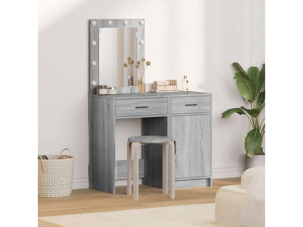 Vyrobeno z odolného kompozitního dřeva, tenhle toaletní set je úžasný středobod v každé ložnici. Módní šedý sonoma povrch mu dodává krásný vzhled, který skvěle kombinuje funkčnost a styl.