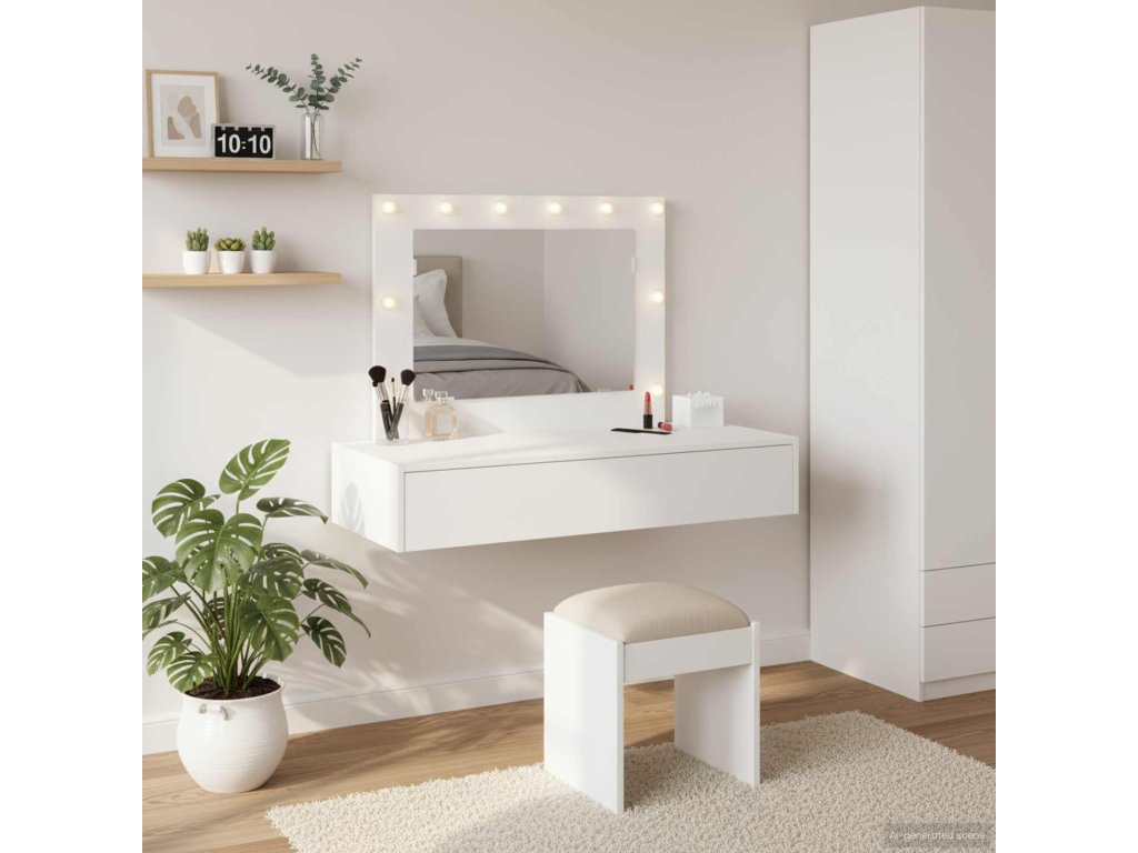 - Integrace plochého zrcadla: Plochý povrch zrcadla zajišťuje jasné odrazy, které jsou ideální pro každodenní úpravy. Jeho jednoduchý design zvyšuje moderní vzhled stolku a splňuje funkční i dekorativní účel.