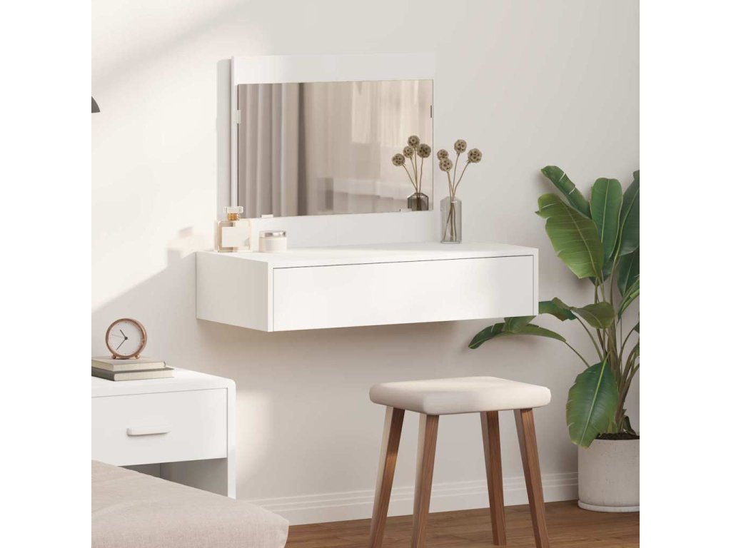 - Integrace plochého zrcadla: Plochý povrch zrcadla zajišťuje jasné odrazy, které jsou ideální pro každodenní úpravy. Jeho jednoduchý design zvyšuje moderní vzhled stolku a splňuje funkční i dekorativní účel.