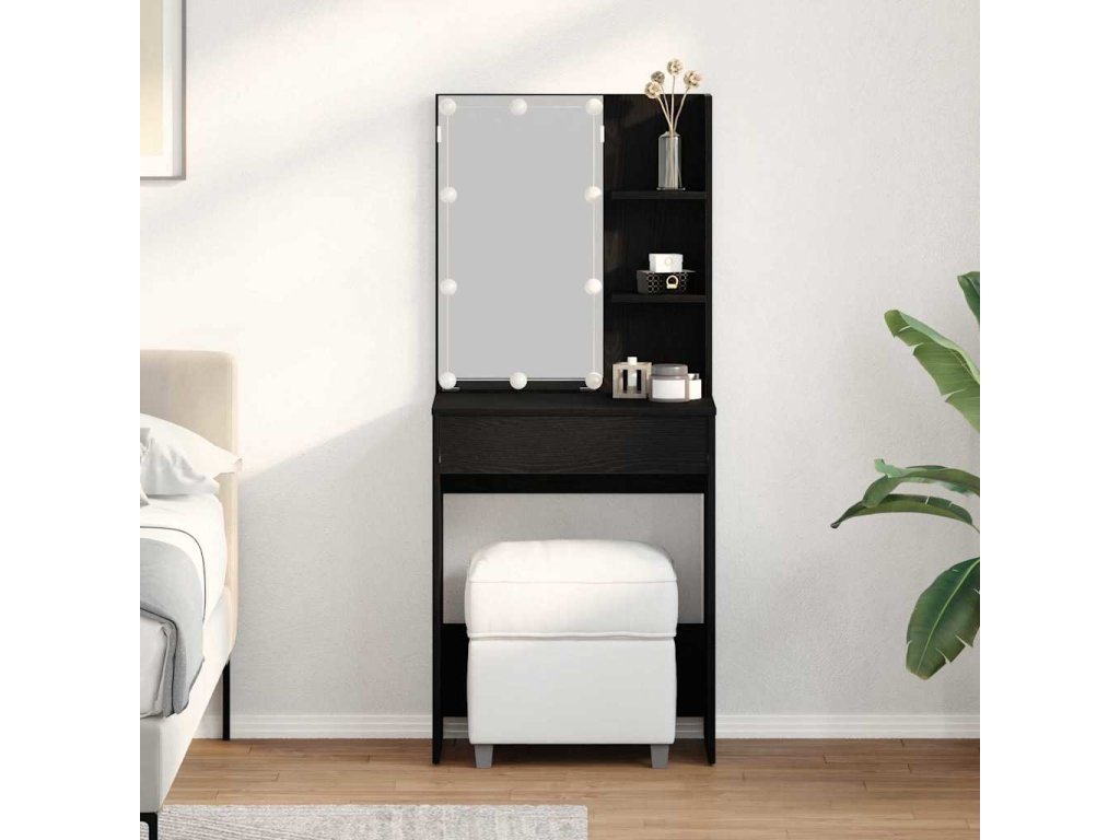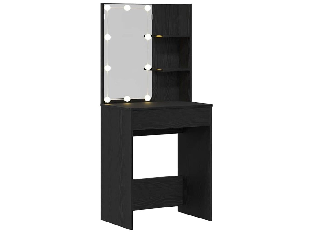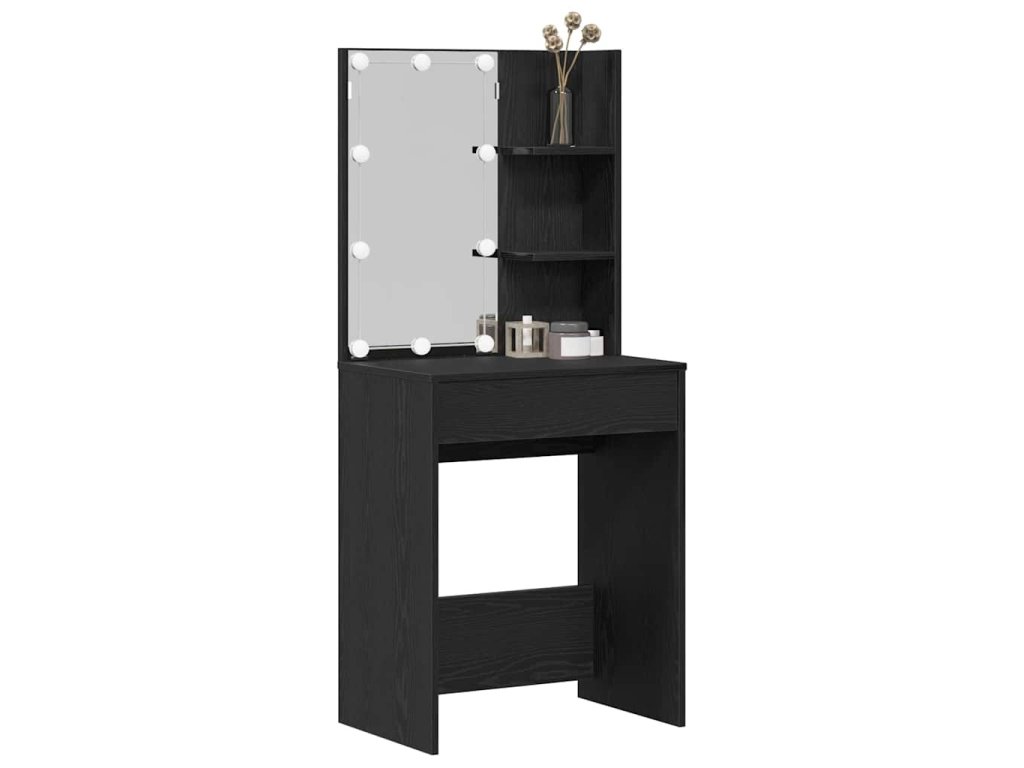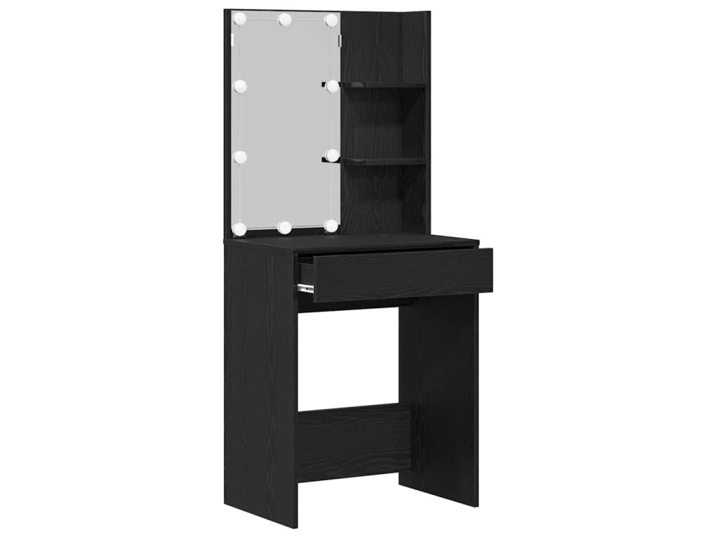- Materiály: Tento toaletní stolek je vyrobený z inženýrského dřeva, které zajišťuje stabilitu a dlouhou životnost. Povrch je hladký a elegantní, doplněný akrylovými prvky pro moderní vzhled.