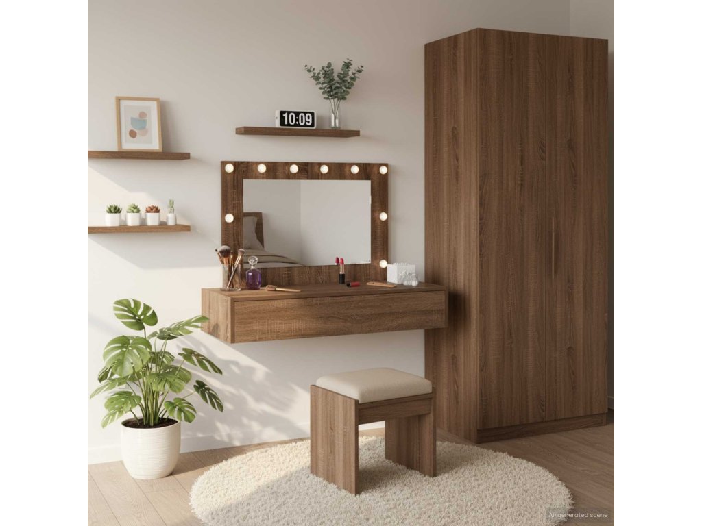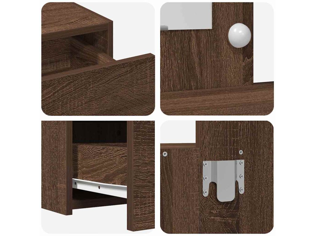 - Integrace plochého zrcadla: Plochý povrch zrcadla zajišťuje jasné odrazy, které jsou ideální pro každodenní úpravy. Jeho jednoduchý design zvyšuje moderní vzhled stolku a splňuje funkční i dekorativní účel.