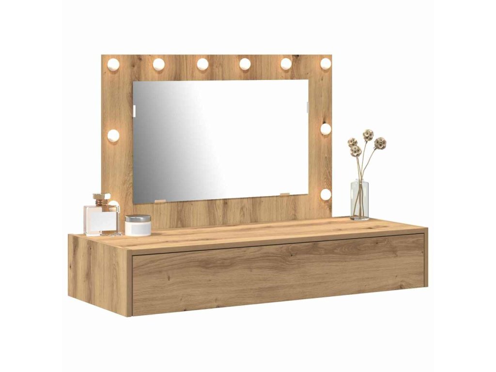 - Integrace plochého zrcadla: Plochý povrch zrcadla zajišťuje jasné odrazy, které jsou ideální pro každodenní úpravy. Jeho jednoduchý design zvyšuje moderní vzhled stolku a splňuje funkční i dekorativní účel.