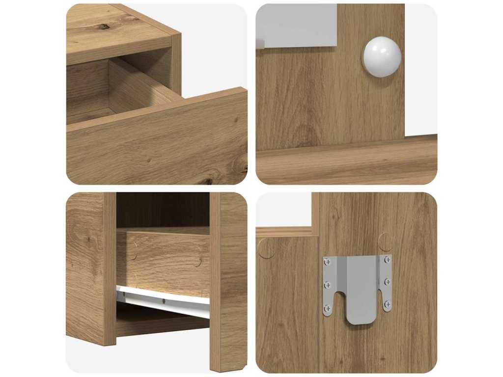 - Inženýrské dřevo: Tento stolek je vyroben z inženýrského dřeva, takže je pevný a dlouhotrvající. Jeho stylový vzhled obohacuje každou ložnici a stává se cenným přírůstkem moderních interiérů. Výběr materiálu zaručuje vytrvalost bez ztráty designu.