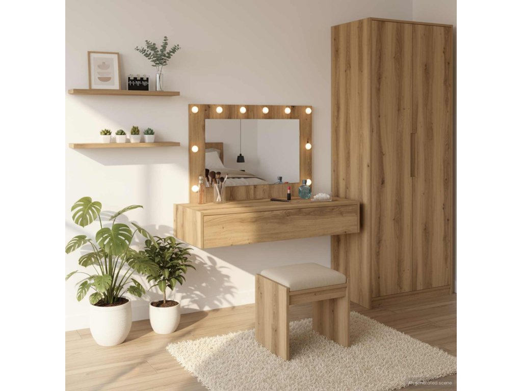 - Prostorné úložné možnosti: Díky dobře navrženým zásuvkám tento toaletní stolek nabízí skvělý způsob, jak udržet kosmetiku, šperky a další nezbytnosti na svém místě. Hladké posuvy zajišťují rychlý přístup a čistý vzhled, když jsou zavřené. Tato funkce maximalizuje využití prostoru bez nepořádku.