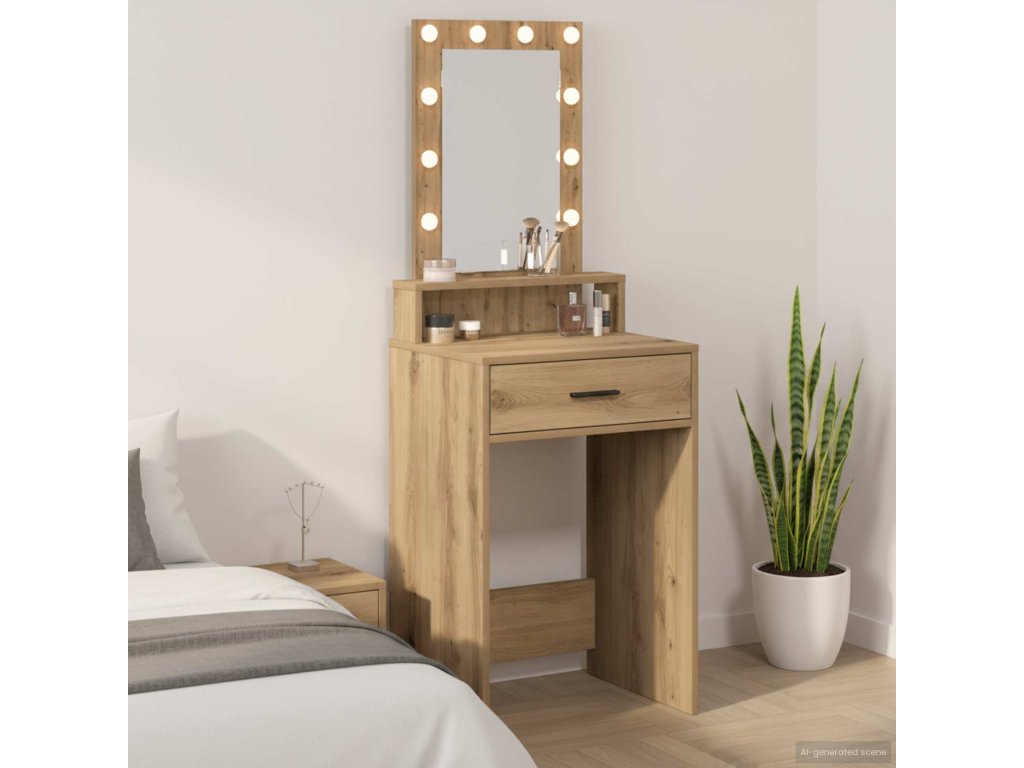 - Stavba z inženýrského dřeva Toaletní stolek je z prémiového inženýrského dřeva, co poskytuje pevnou základnu a krásně se hodí do moderních interiérů. Matný povrch dodává nadčasový vzhled, takže se stane trvalou součástí tvé ložnice.