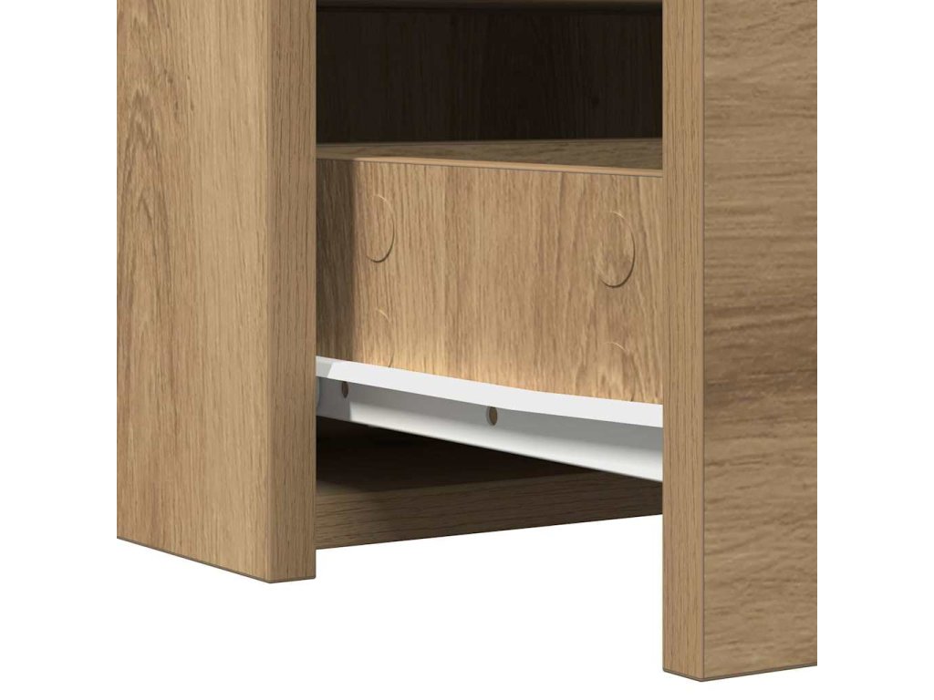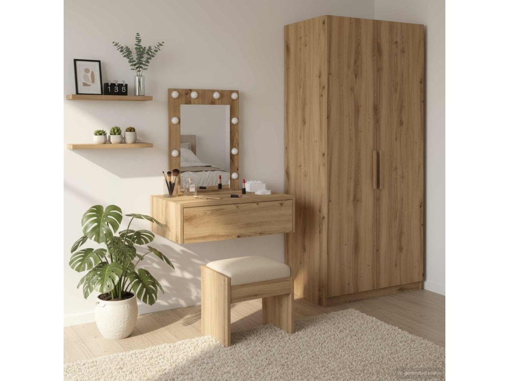 - Inženýrské dřevo: Tento stolek je vyroben z inženýrského dřeva, takže je pevný a dlouhotrvající. Jeho stylový vzhled obohacuje každou ložnici a stává se cenným přírůstkem moderních interiérů. Výběr materiálu zaručuje vytrvalost bez ztráty designu.