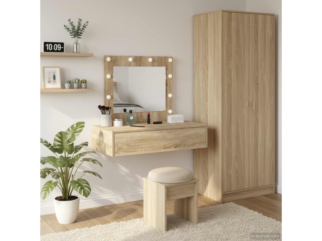 - Integrace plochého zrcadla: Plochý povrch zrcadla zajišťuje jasné odrazy, které jsou ideální pro každodenní úpravy. Jeho jednoduchý design zvyšuje moderní vzhled stolku a splňuje funkční i dekorativní účel.