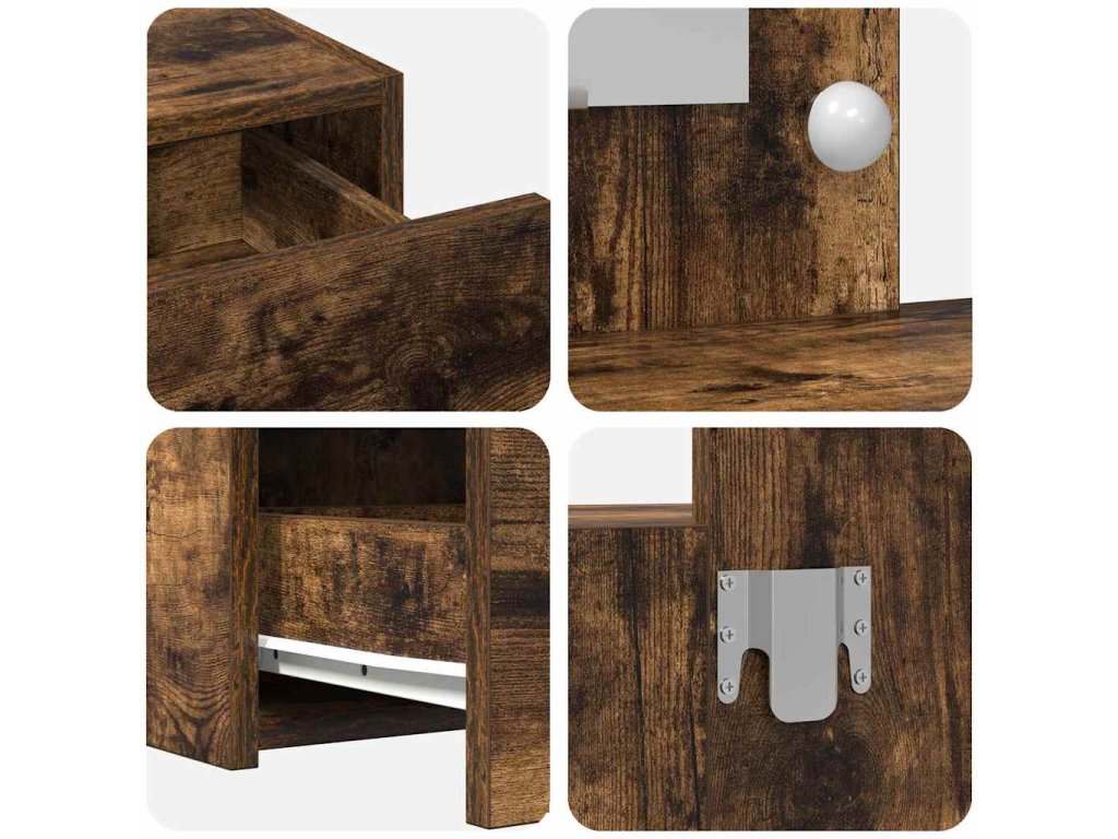- Inženýrské dřevo: Tento stolek je vyroben z inženýrského dřeva, takže je pevný a dlouhotrvající. Jeho stylový vzhled obohacuje každou ložnici a stává se cenným přírůstkem moderních interiérů. Výběr materiálu zaručuje vytrvalost bez ztráty designu.