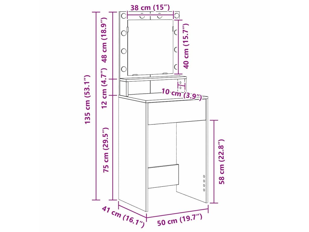 - Materiály: Tento toaletní stolek je vyroben z kompozitního dřeva. Je robustní a spolehlivý. Kompozitní dřevo je odolné a vypadá pěkně, takže si udrží svůj vzhled i po letech. Je odolný vůči deformacím a poškození, takže vám vydrží dlouho.