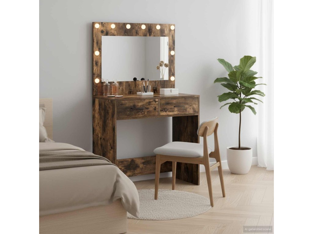 - Vysoce kvalitní inženýrské dřevo: Tento toaletní stolek je vyroben z odolného inženýrského dřeva, takže je stylový a spolehlivý. Textura dřeva mu dodává luxusní vzhled a zajišťuje, že vydrží – skvělá volba pro ty, co si zakládají na stylu. Je silný a robustní, připravený na každodenní používání bez známek opotřebení.