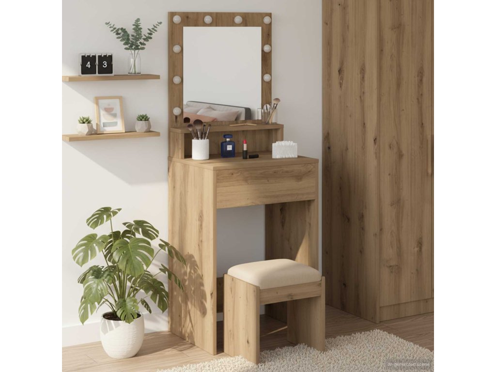 Tento toaletní stolek s LED světly je elegantní kousek moderního nábytku, suitable for co přidá tvé ložnici šmrnc a funkčnost. Má štíhlý obdélníkový tvar a čisté linie, takže se hodí jak k tradičnímu, tak k modernímu stylu. Povrch je hezký, s texturovaným kompozitním dřevem, suitable for co dává praktické řešení pro úložný prostor a organizaci. Rovinné zrcadlo, suitable for co je součástí designu, přidává špetku elegance, je ideální na úpravy a dekoraci. S dostatečnými úložnými prostory je tenhle stolek určen pro lidi, suitable for co ocení organizovaný a pohodlný život, takže všechno, suitable for co potřebuješ, je krásně a efektivně uložené.