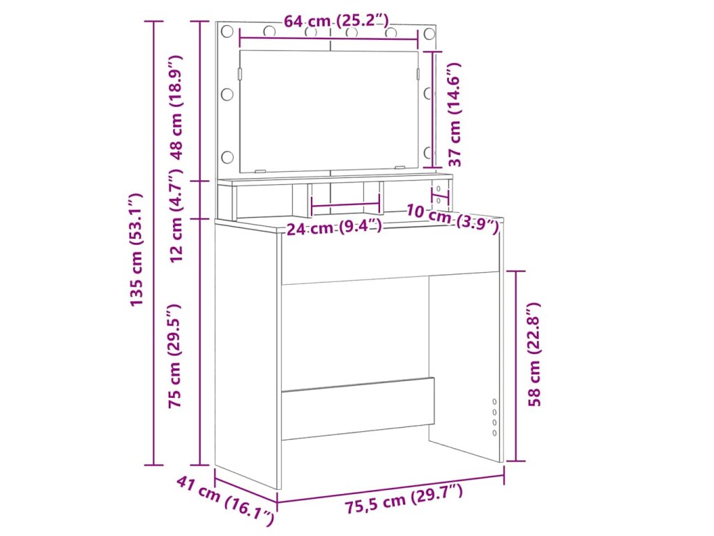 - Materiály: Tento toaletní stolek je vyroben z kompozitního dřeva. Je robustní a spolehlivý. Kompozitní dřevo je odolné a vypadá pěkně, takže si udrží svůj vzhled i po letech. Je odolný vůči deformacím a poškození, takže vám vydrží dlouho.