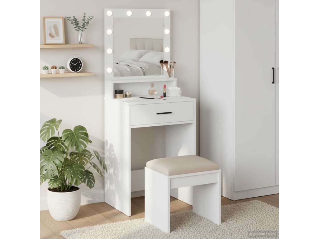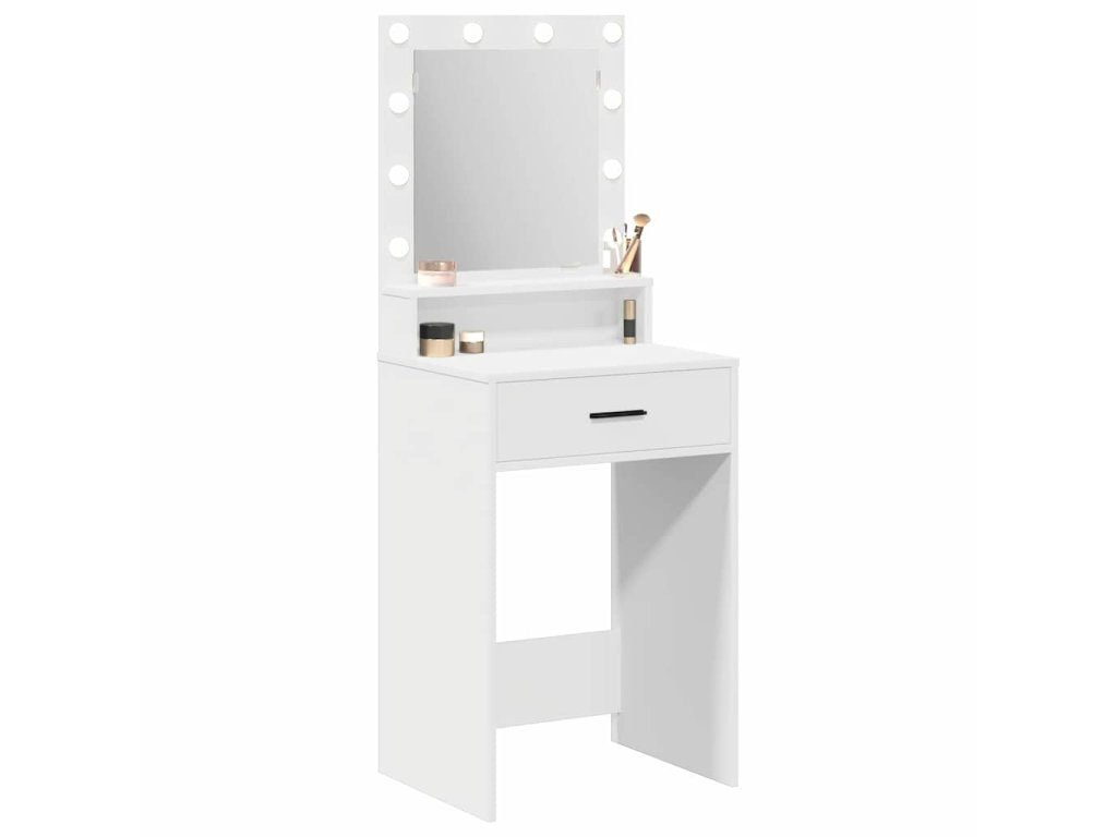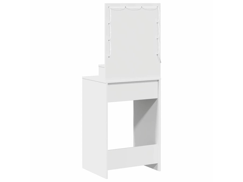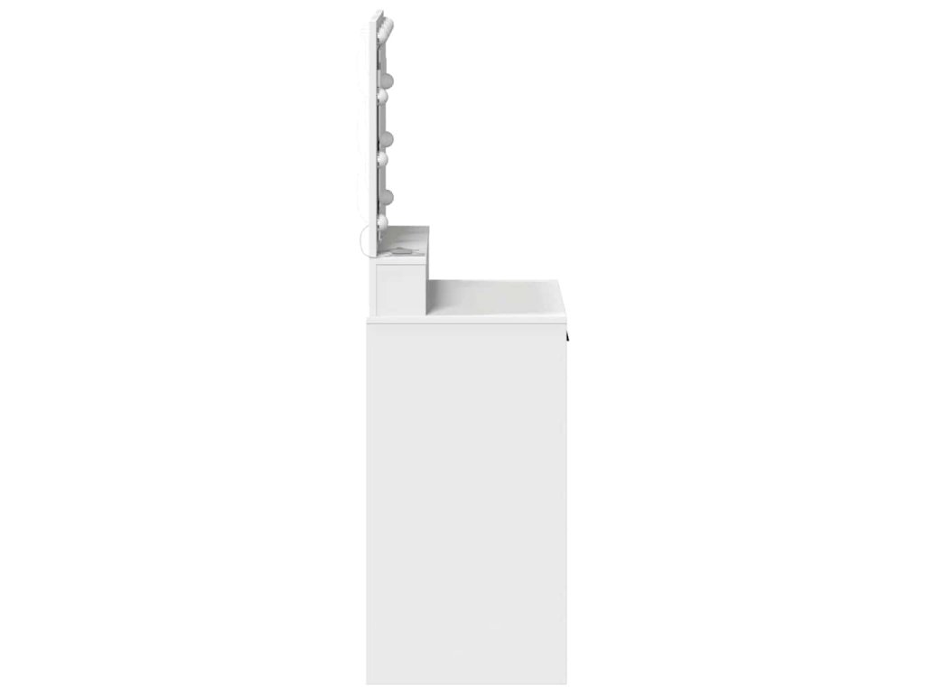 - Integrované osvětlení: Stolek má LED osvětlení, které poskytuje jasné a úsporné světlo. Tato světla zlepšují viditelnost při úpravách, což usnadňuje nanášení make-upu nebo kontrolu oblečení. Tlačítkový spínač zajišťuje snadné ovládání, což usnadňuje uživatelský zážitek.