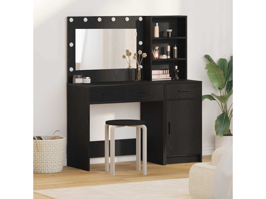 - Stavba z kompozitního dřeva: Tento toaletní stůl má robustní konstrukci z kvalitního kompozitního dřeva, známého pro svou odolnost. Hladký povrch skvěle zapadne do moderního designu a odolává vlhkosti a praskání, takže si dlouho udrží pěkný vzhled.