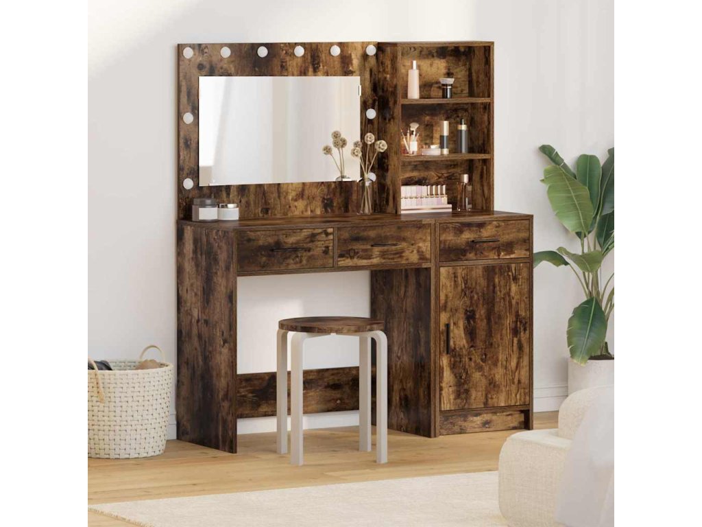 - Stavba z kompozitního dřeva: Tento toaletní stůl má robustní konstrukci z kvalitního kompozitního dřeva, známého pro svou odolnost. Hladký povrch skvěle zapadne do moderního designu a odolává vlhkosti a praskání, takže si dlouho udrží pěkný vzhled.