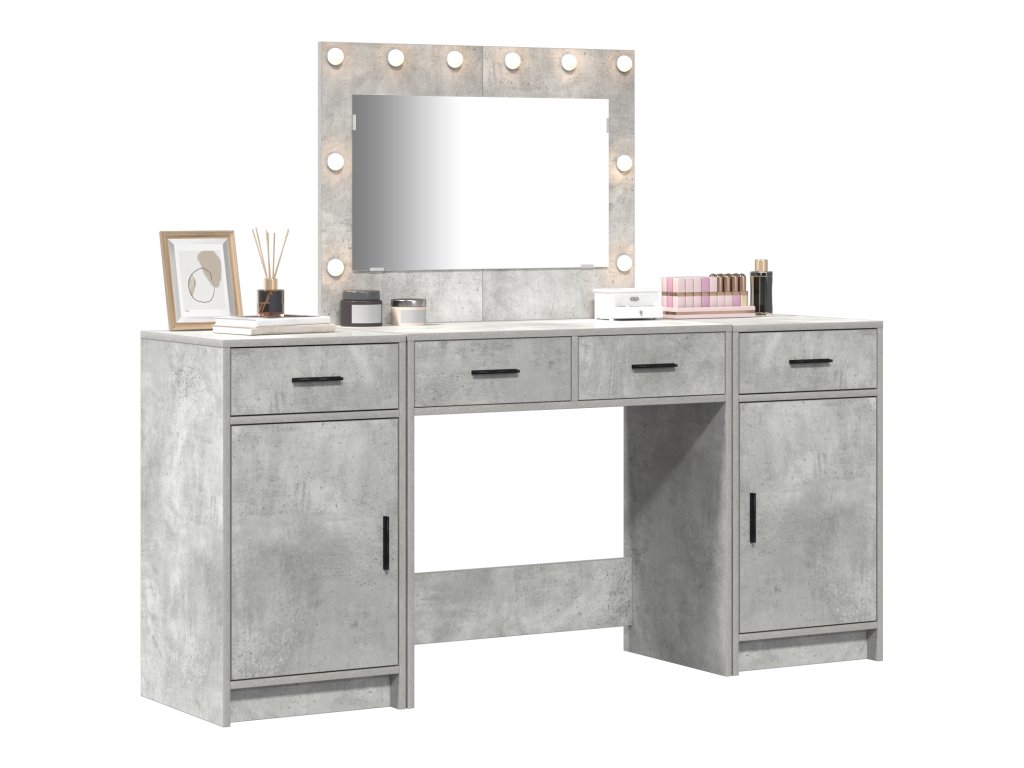 Tento betonově šedý toaletní stolek se zrcadlem je nezbytný pro každou moderní šatnu nebo ložnici. Skvělý pro osobní grooming a přípravu, jeho hladký, leštěný povrch zlepší váš prostor a poskytne vám vlastní místo na všechny kosmetické potřeby.