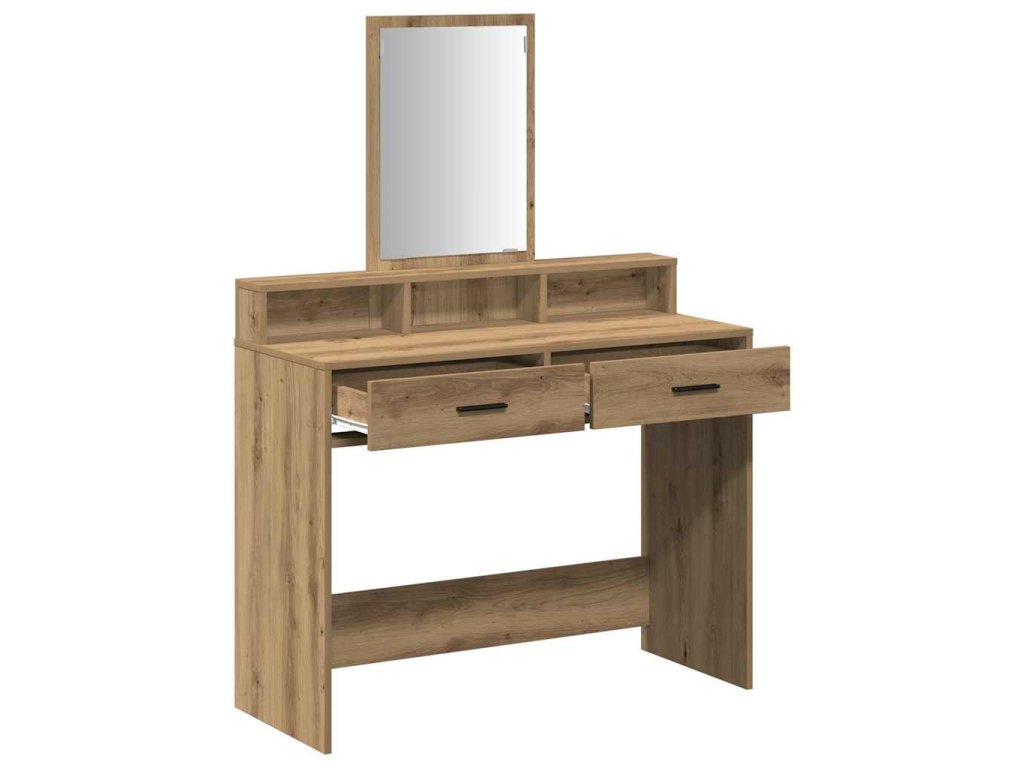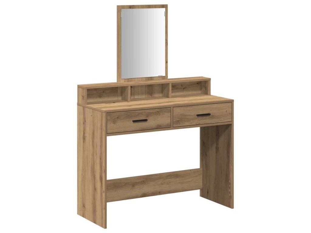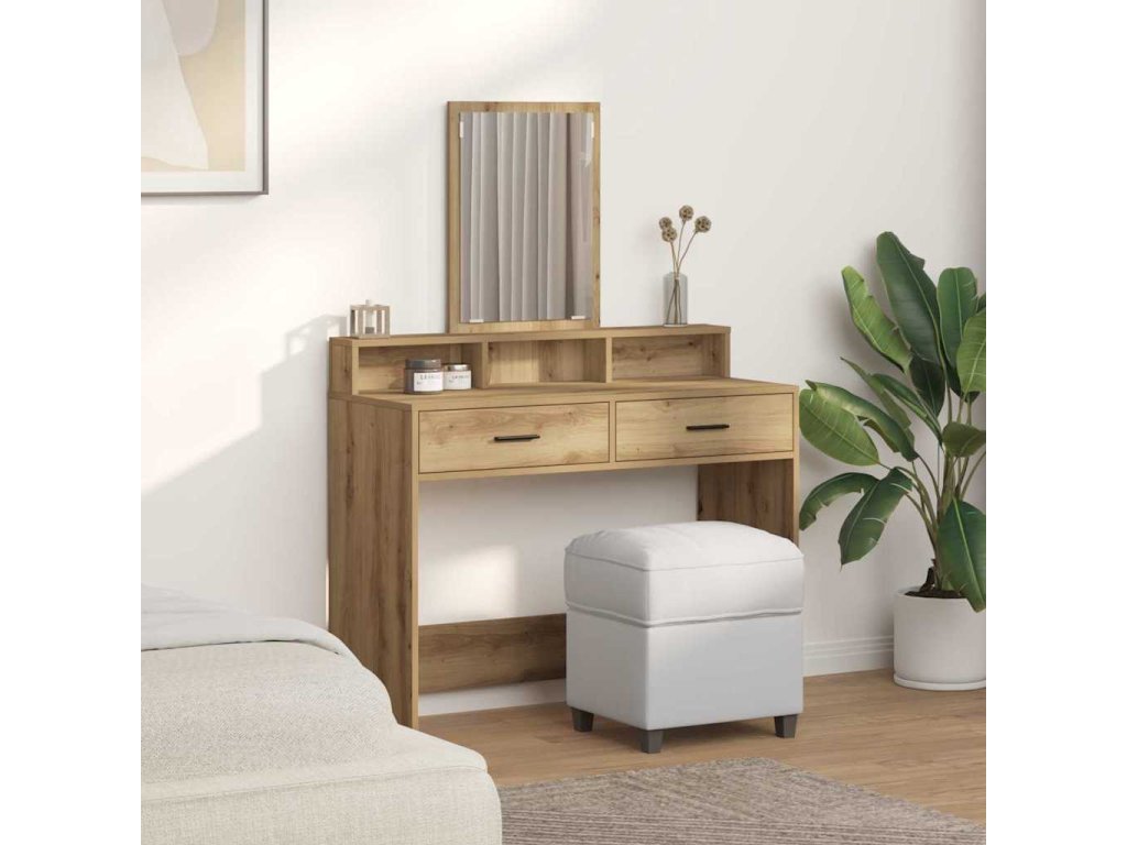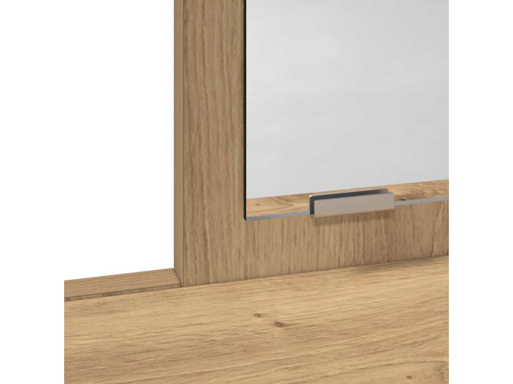 - Konstrukce z kompozitního dřeva Tento toaletní stolek je ze silného kompozitního dřeva, takže je stabilní a odolný. Materiál je známý svojí tvrdostí, takže je ideální na každodenní užívání. Matný povrch jeho designu dodává štíhlý vzhled a vyžaduje minimum údržby.