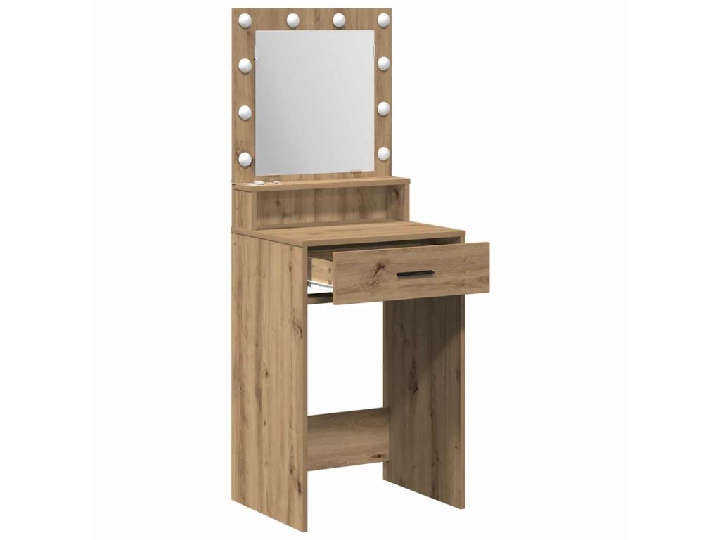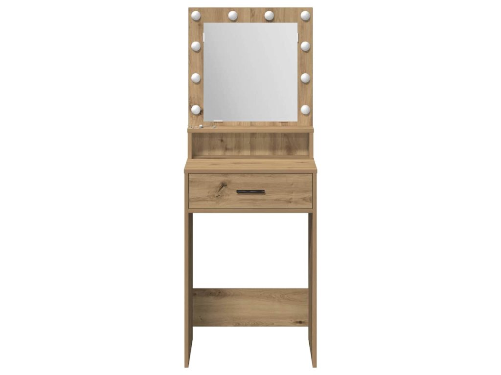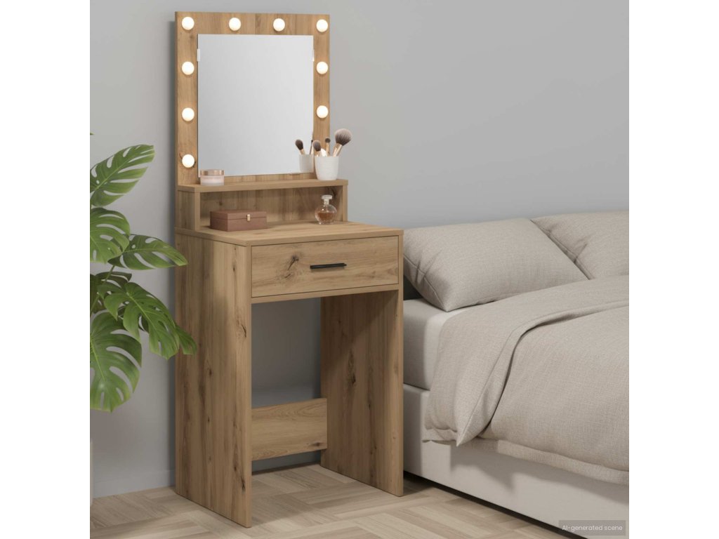 - Robustní konstrukce: Vyrobený z kompozitního dřeva, toaletní stolek zaručuje odolnost a spolehlivost. Silný rám unese každodenní používání a poskytuje stabilní povrch. Kompozitní dřevo zajišťuje spolehlivou oporu, zatímco lehká konstrukce usnadňuje přesun.