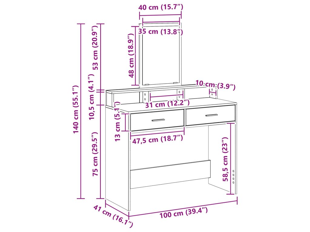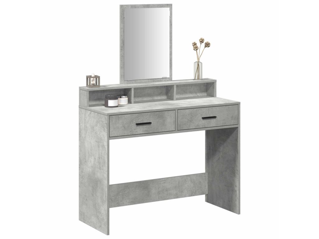 - Konstrukce z kompozitního dřeva Tento toaletní stolek je ze silného kompozitního dřeva, takže je stabilní a odolný. Materiál je známý svojí tvrdostí, takže je ideální na každodenní užívání. Matný povrch jeho designu dodává štíhlý vzhled a vyžaduje minimum údržby.